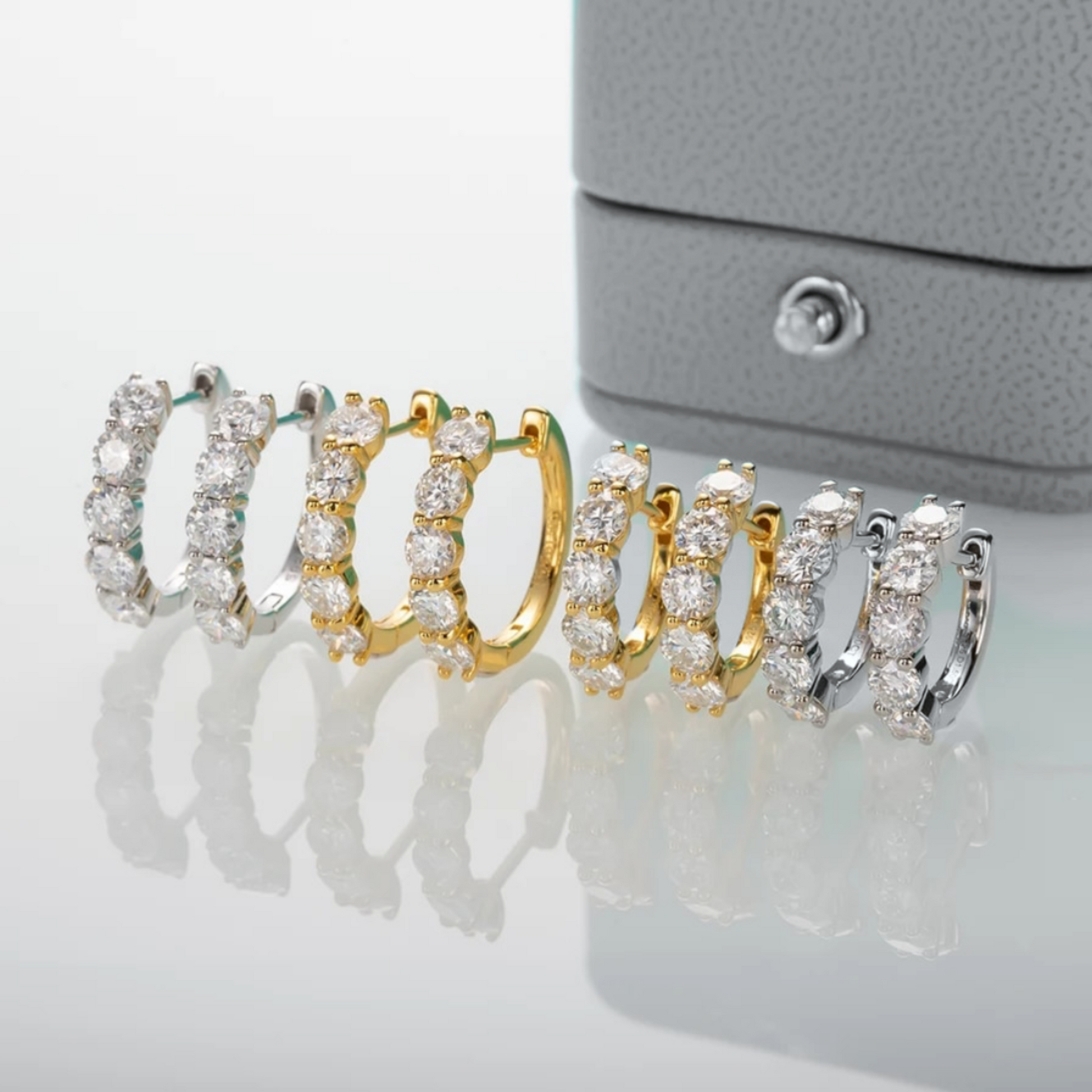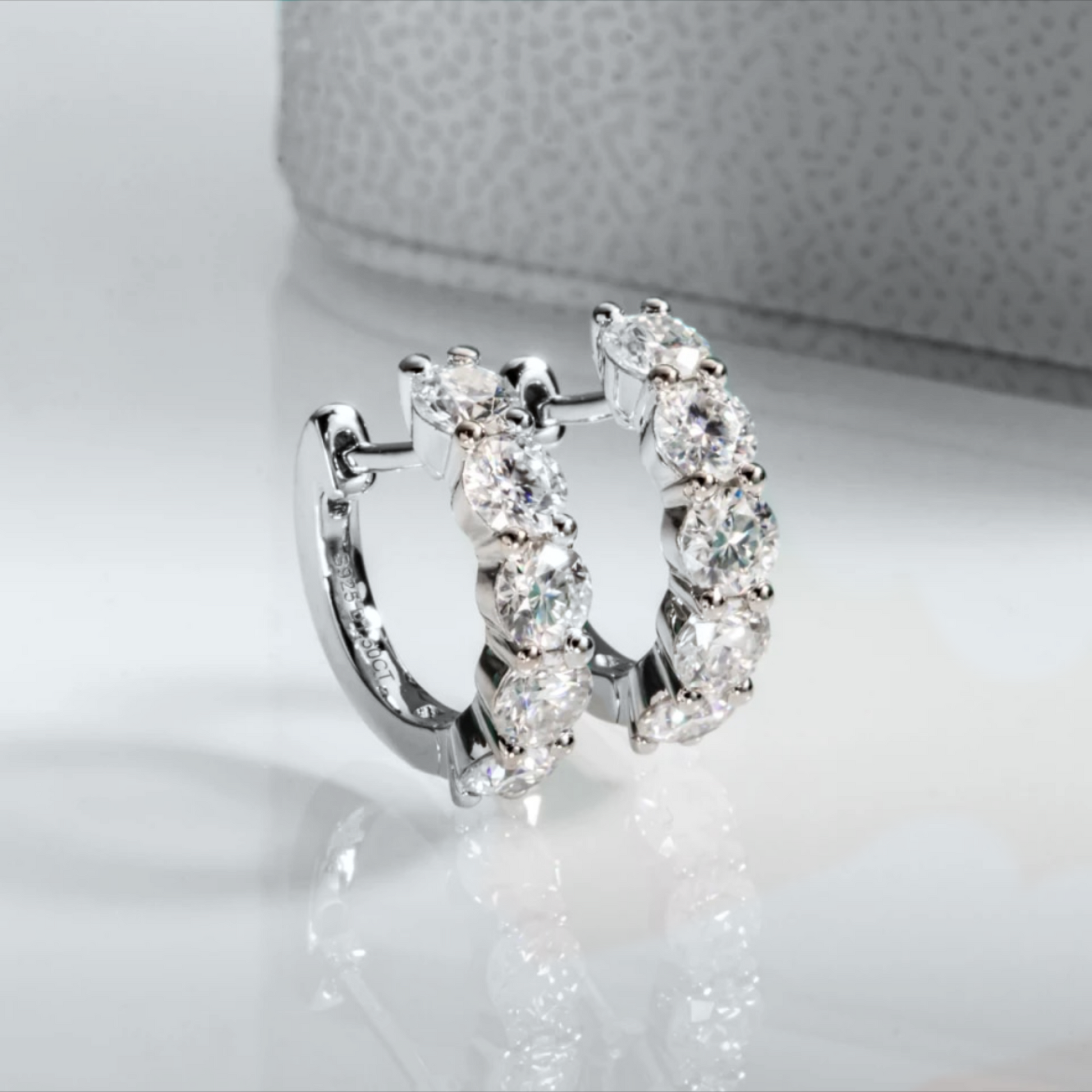 Our Natasha hoop earrings are a timeless and stylish addition to any jewellery collection, with striking and beautiful moissanite stones, available in two sizes.