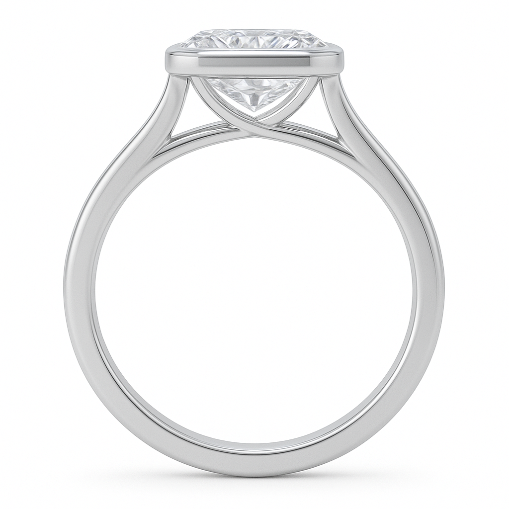 A study in understated brilliance, the Abigail ring captures the quiet power of modern design. At its heart sits a captivating 3ct stone, bezel-set for a clean, seamless silhouette that feels both contemporary and enduring. The bezel setting encircles the stone in precious metal, enhancing its natural radiance while offering a sense of protection and permanence.