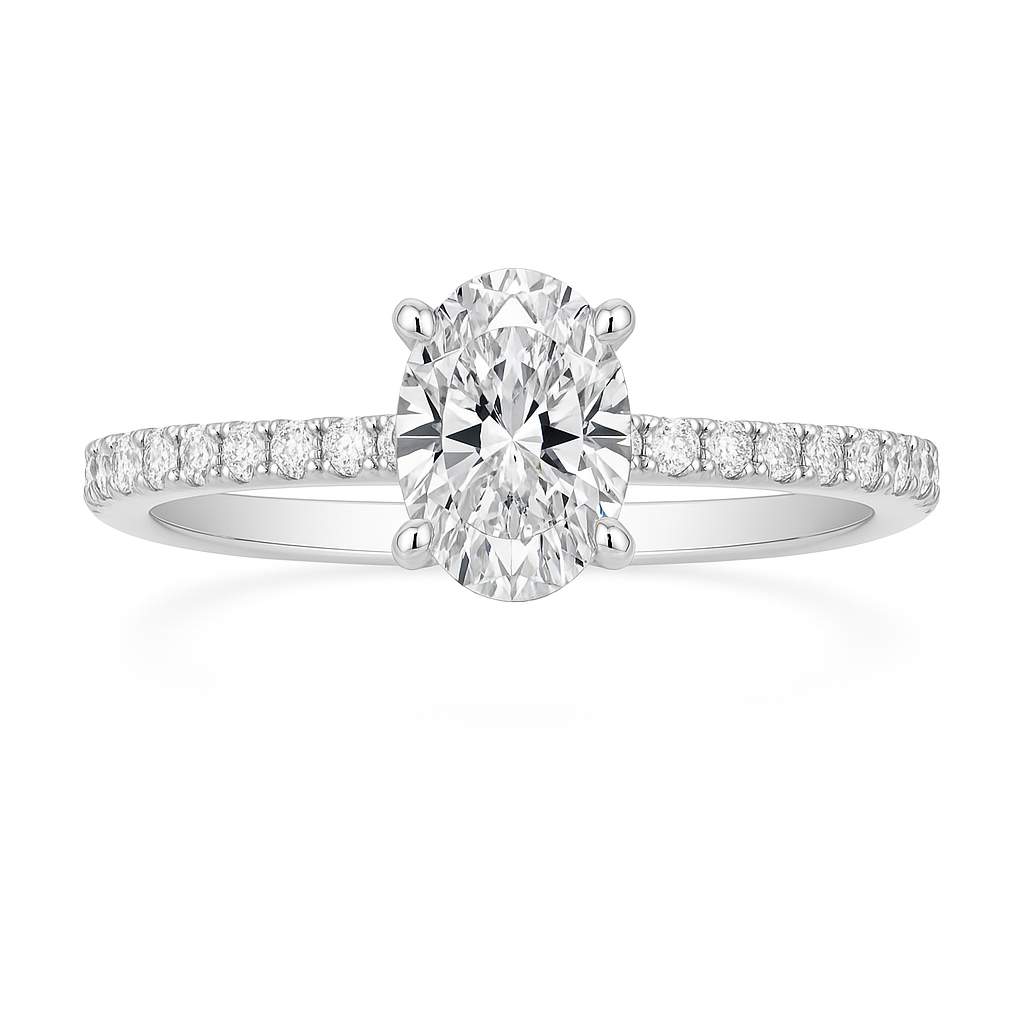 Sleek, sculptural, and endlessly timeless — the Adia ring is a modern heirloom in the making. Featuring a 1ct oval-cut centre stone, it’s paired with a finely set pavé band that adds a subtle shimmer without overpowering the silhouette.
