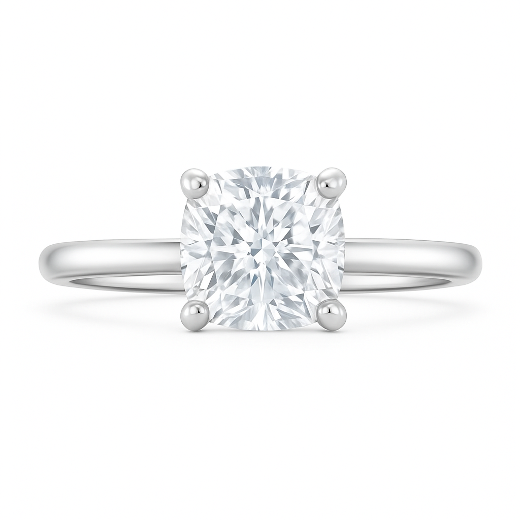 The Amara Ring is a timeless expression of elegance, featuring a radiant 1ct cushion-cut solitaire that reflects light with captivating brilliance. Set in a classic four-prong design, the stone is elevated to shine while the clean band offers a refined, minimalist backdrop.