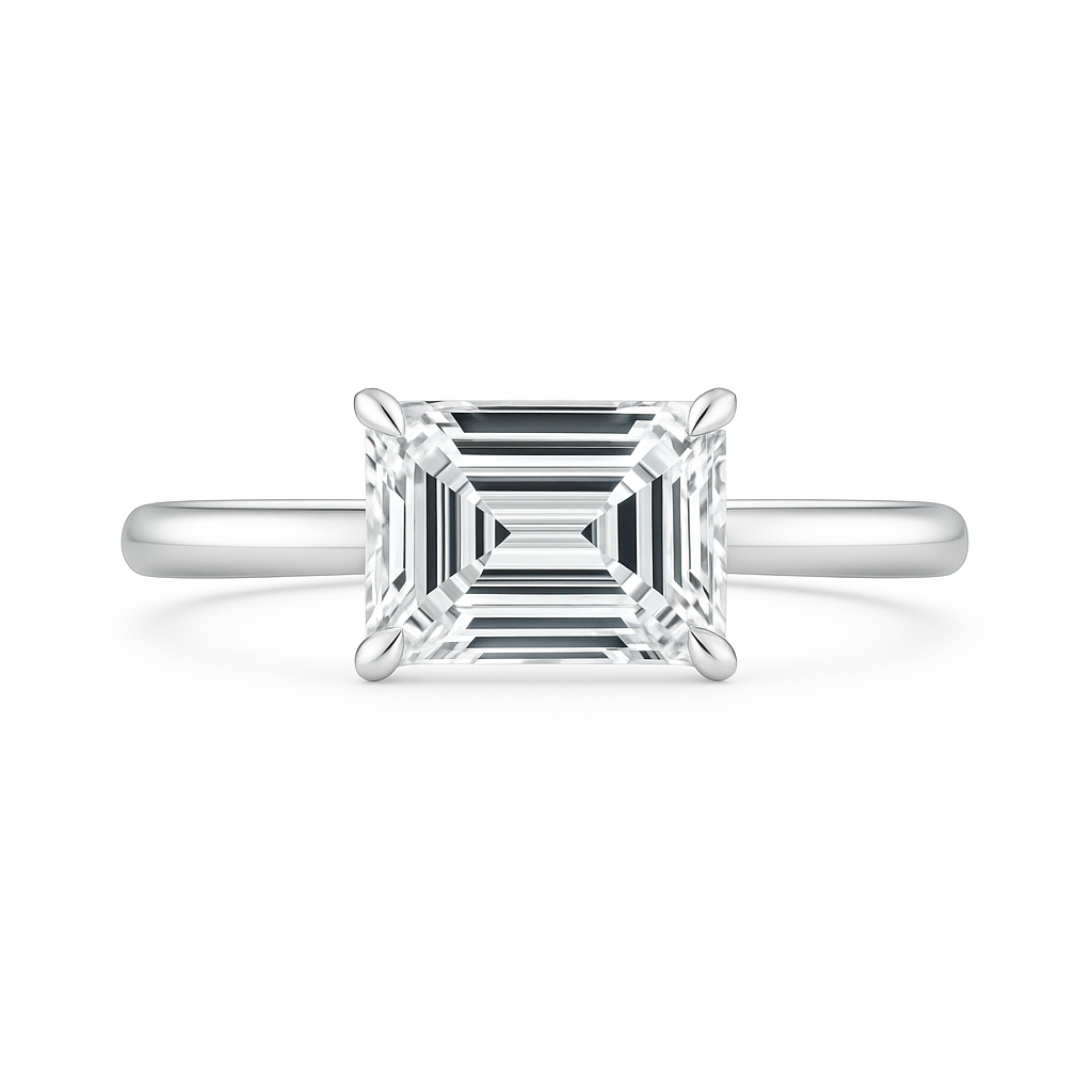 Meet the Laura Ring – a sleek and contemporary design that redefines classic elegance. Showcasing a striking 2ct emerald-cut centre stone set in a modern east-west orientation, this piece is both bold and minimalist in its allure.