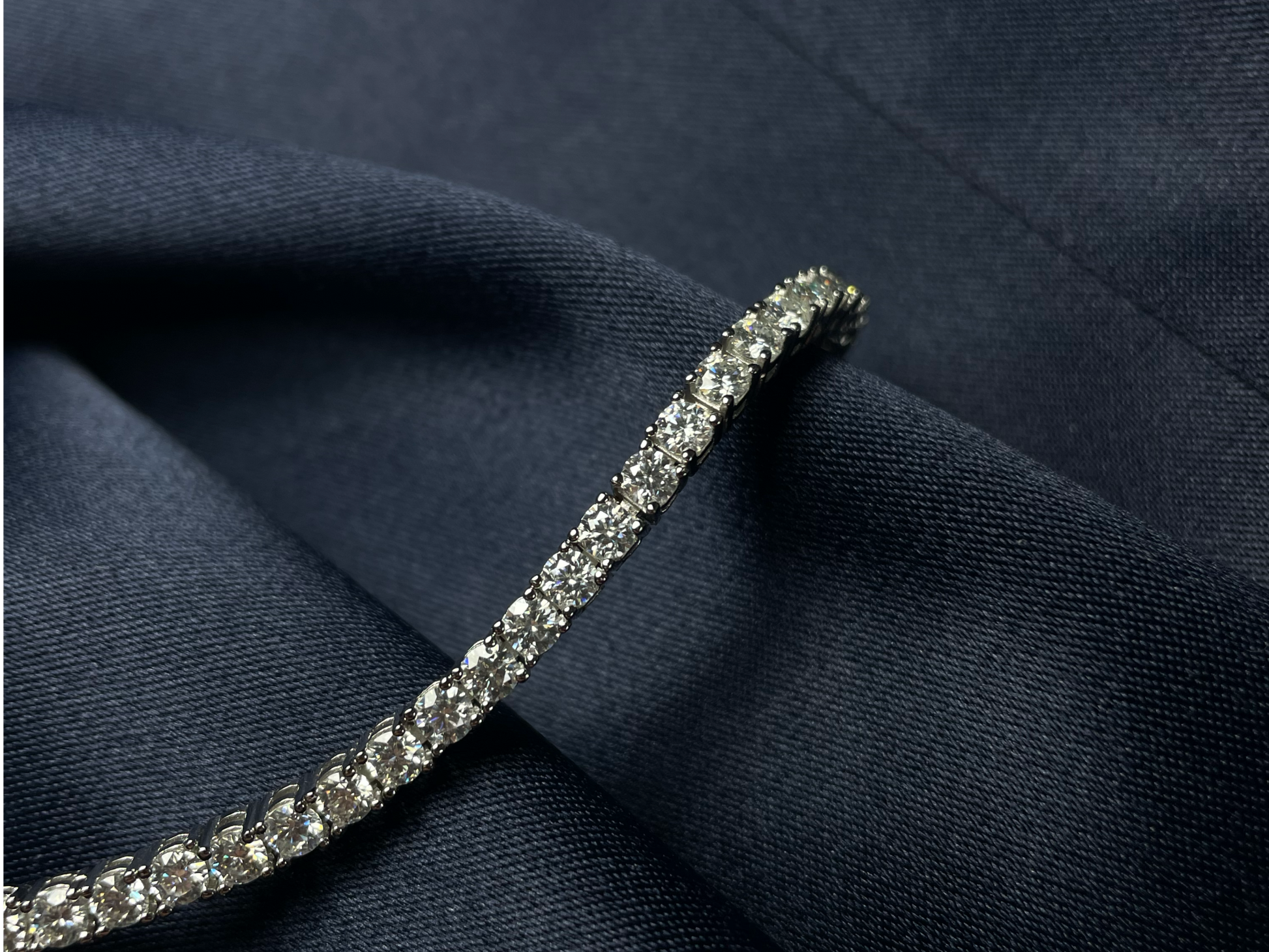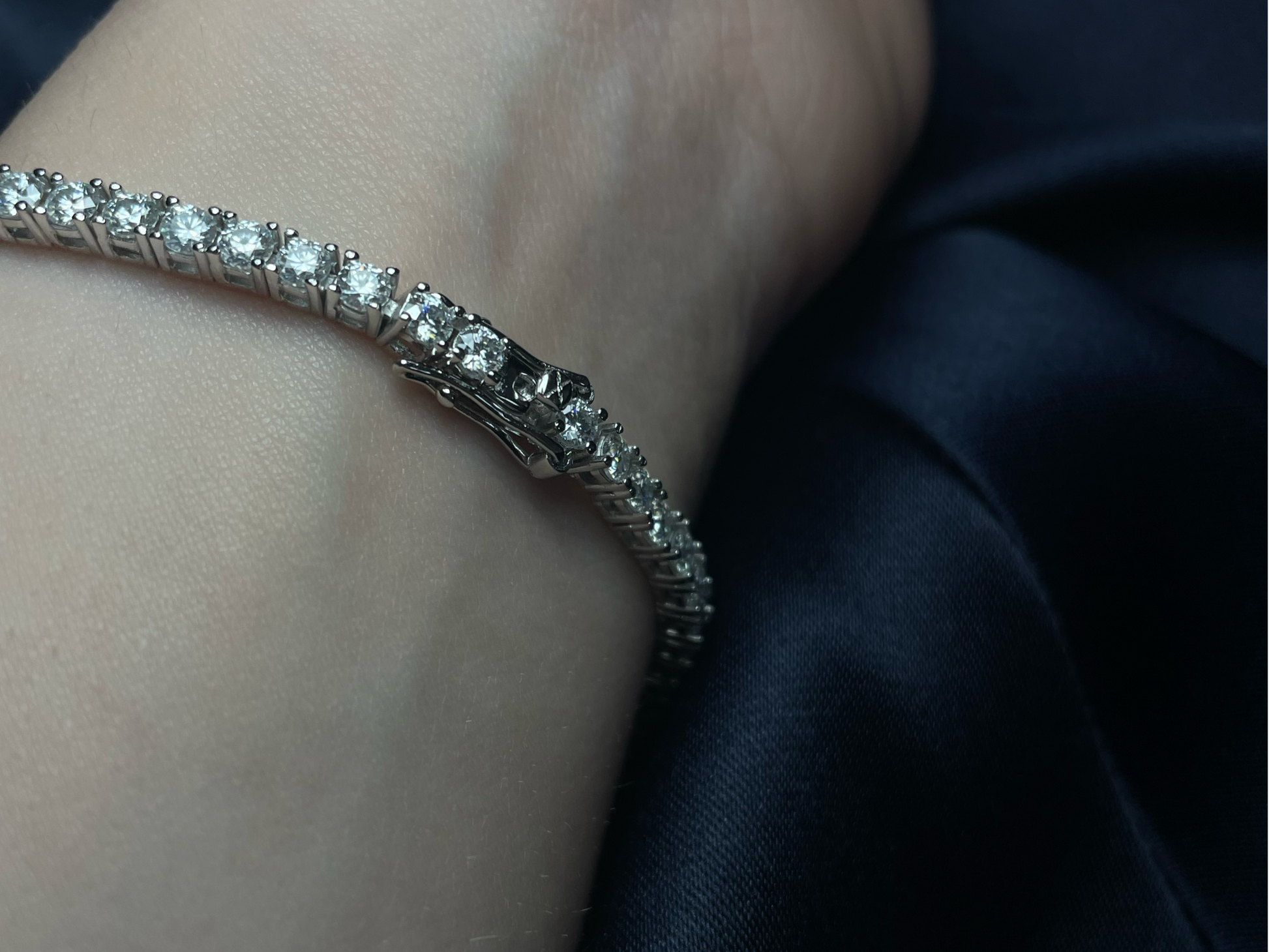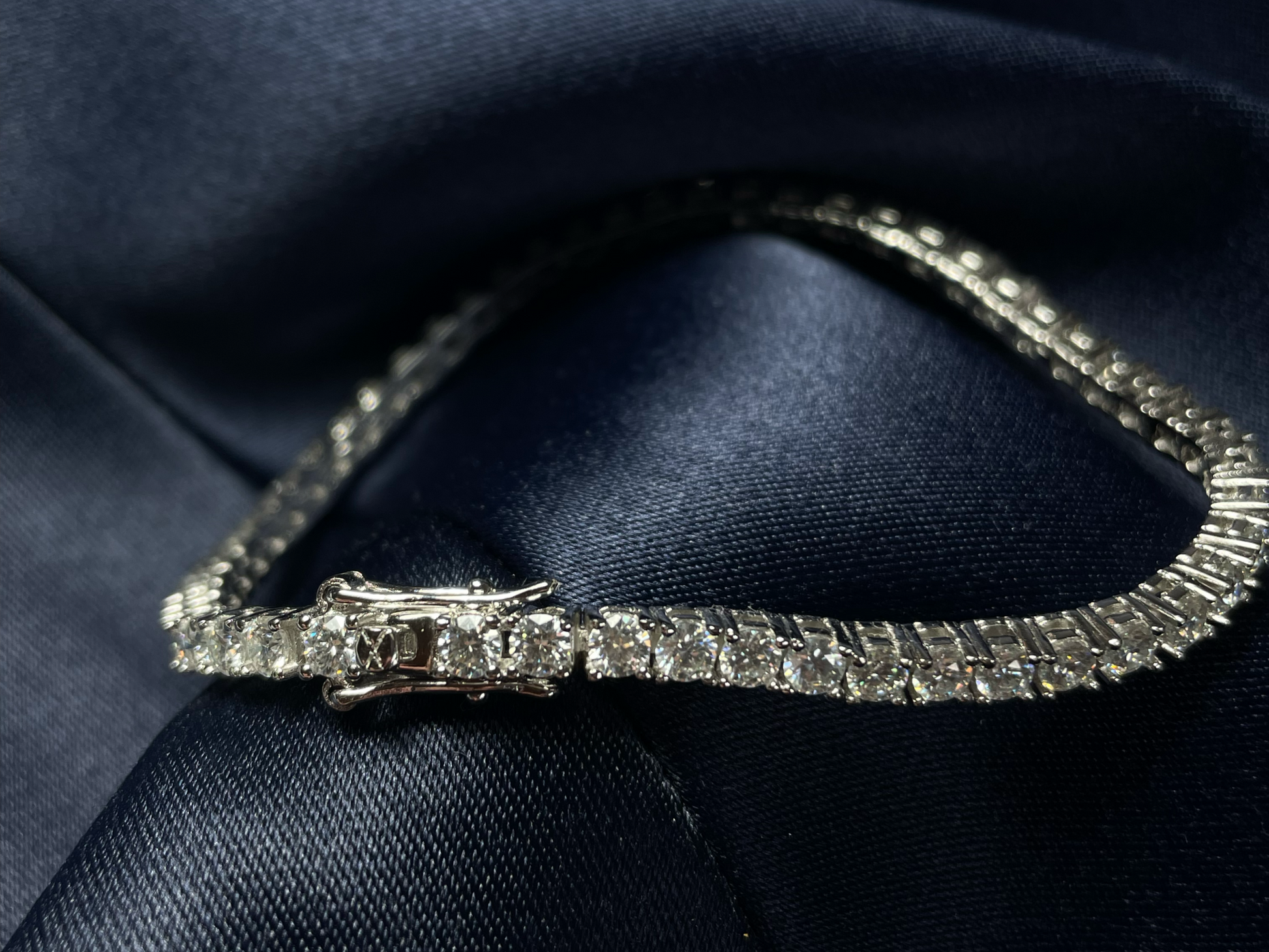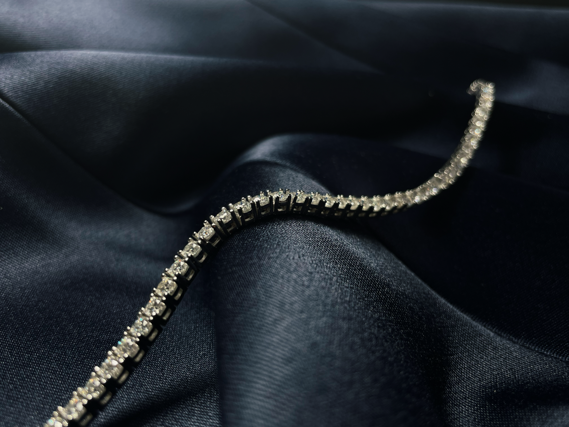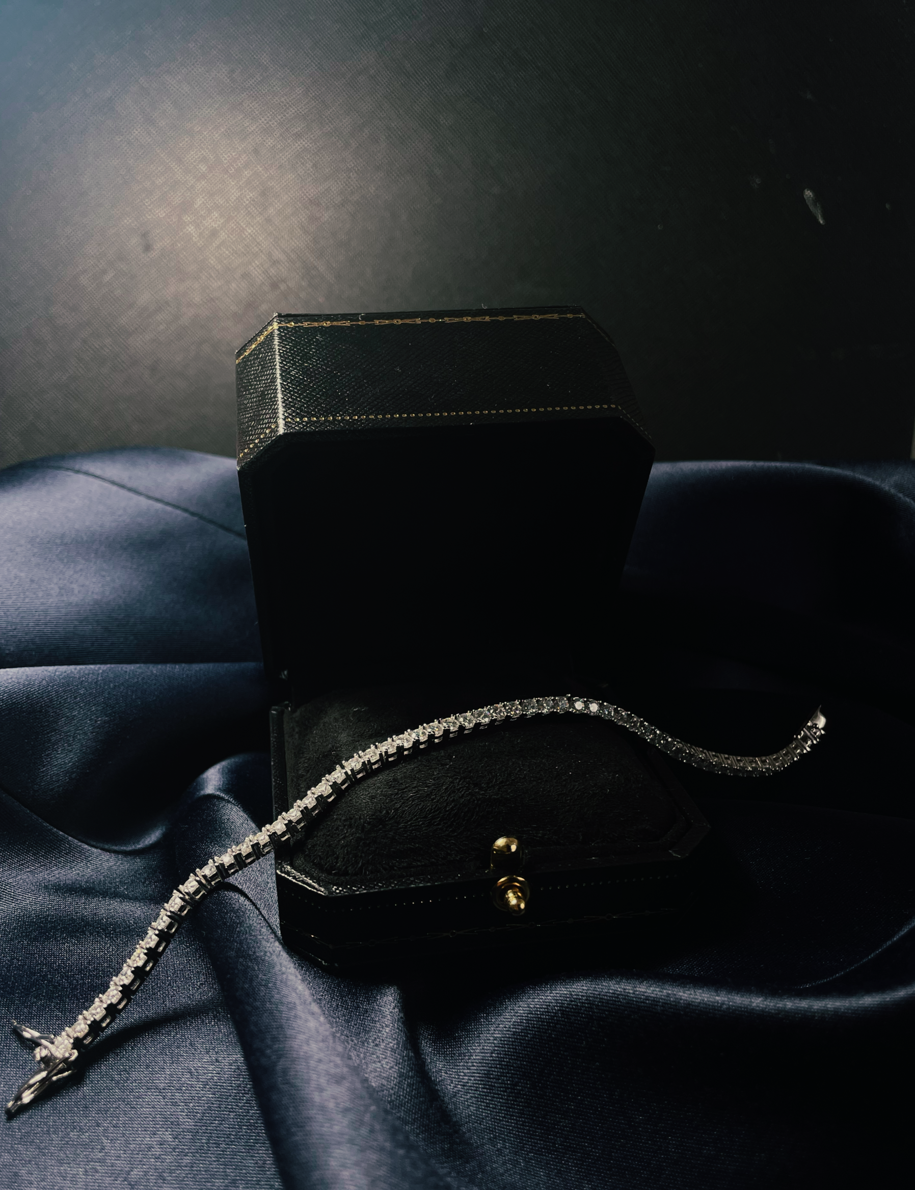 Each link of this bracelet is a testament to exquisite craftsmanship, ensuring a seamless flow of shimmering radiance around your wrist. Embrace sophistication effortlessly as this piece effortlessly graces your ensemble with its refined glamour, adding an enchanting touch to any occasion.