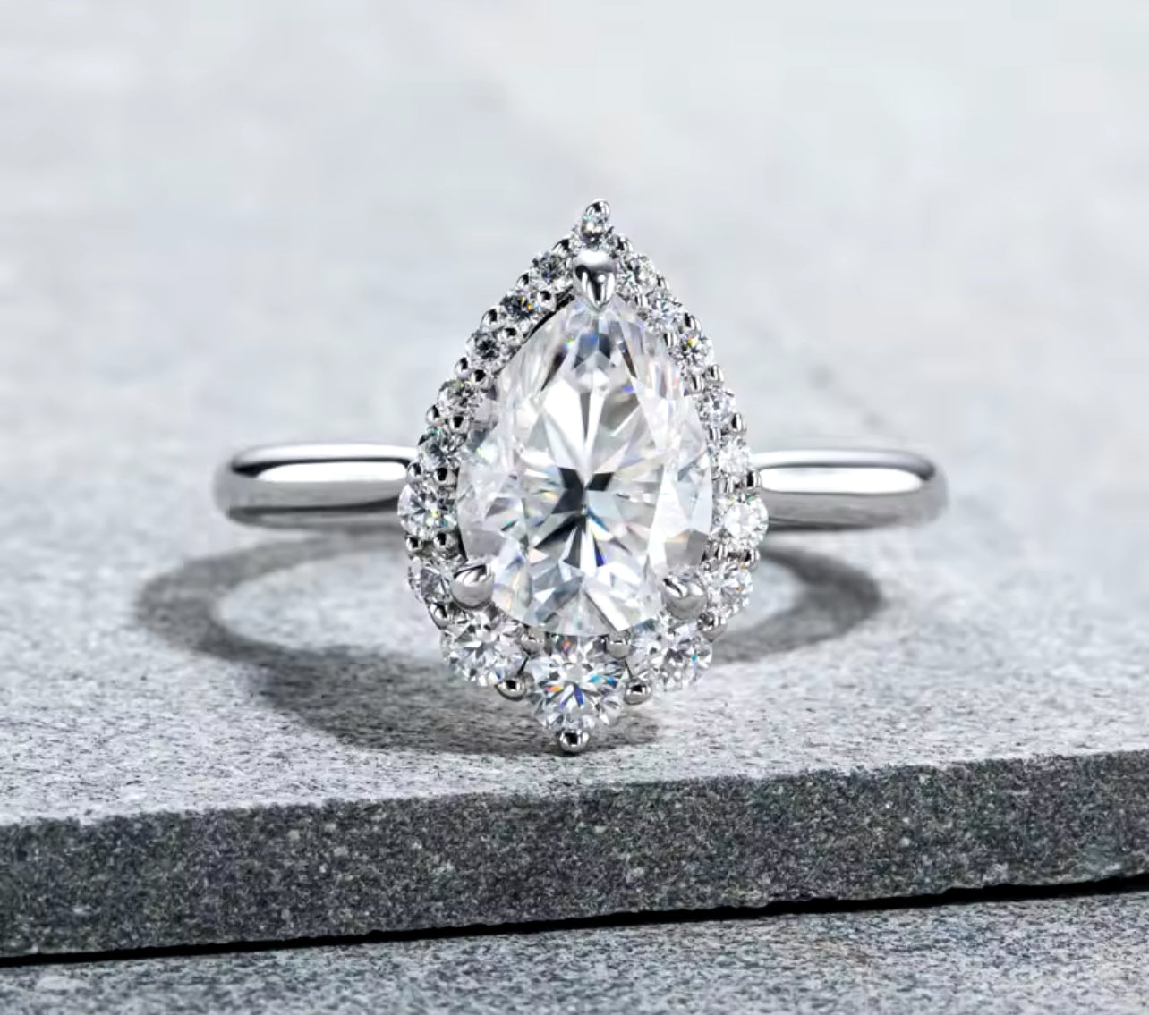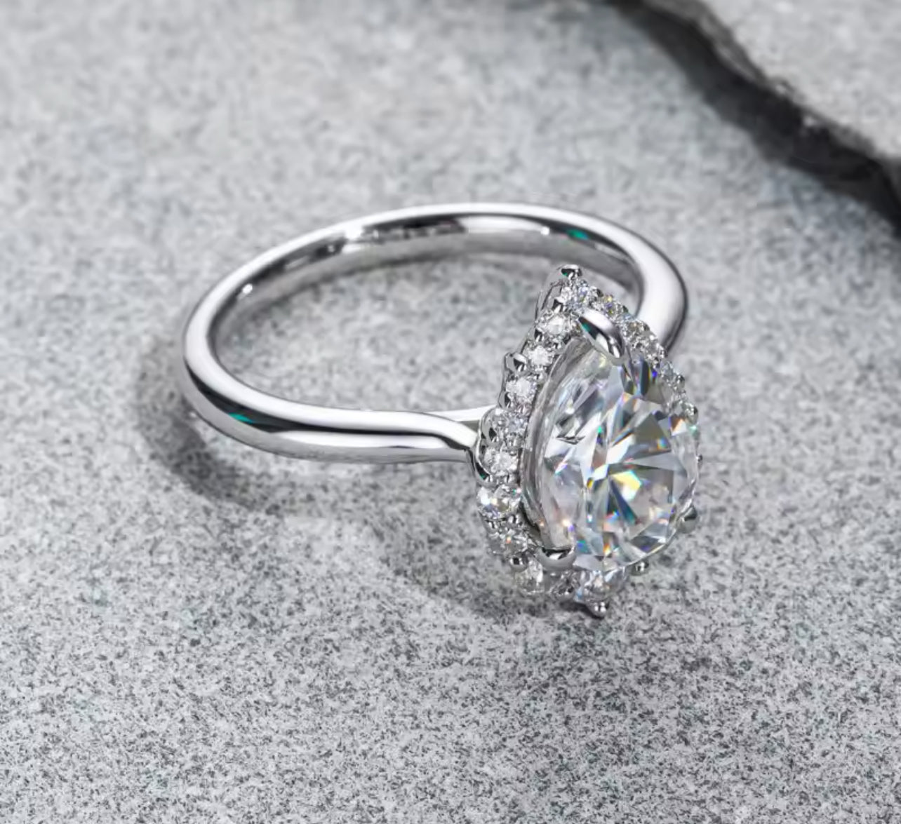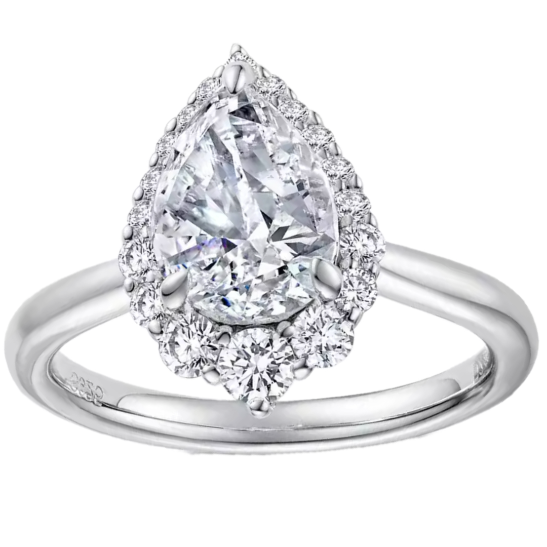 The Arabella ring showcases a stunning 2-carat pear-cut center stone, gracefully set to captivate with its elegance and brilliance. Enhanced by a delicate, gradual pavé that adds a refined sparkle, this piece is designed to be timeless and sophisticated. The Arabella ring embodies luxury with a touch of romance, perfect for those seeking a piece that is as breathtaking as it is enduring.