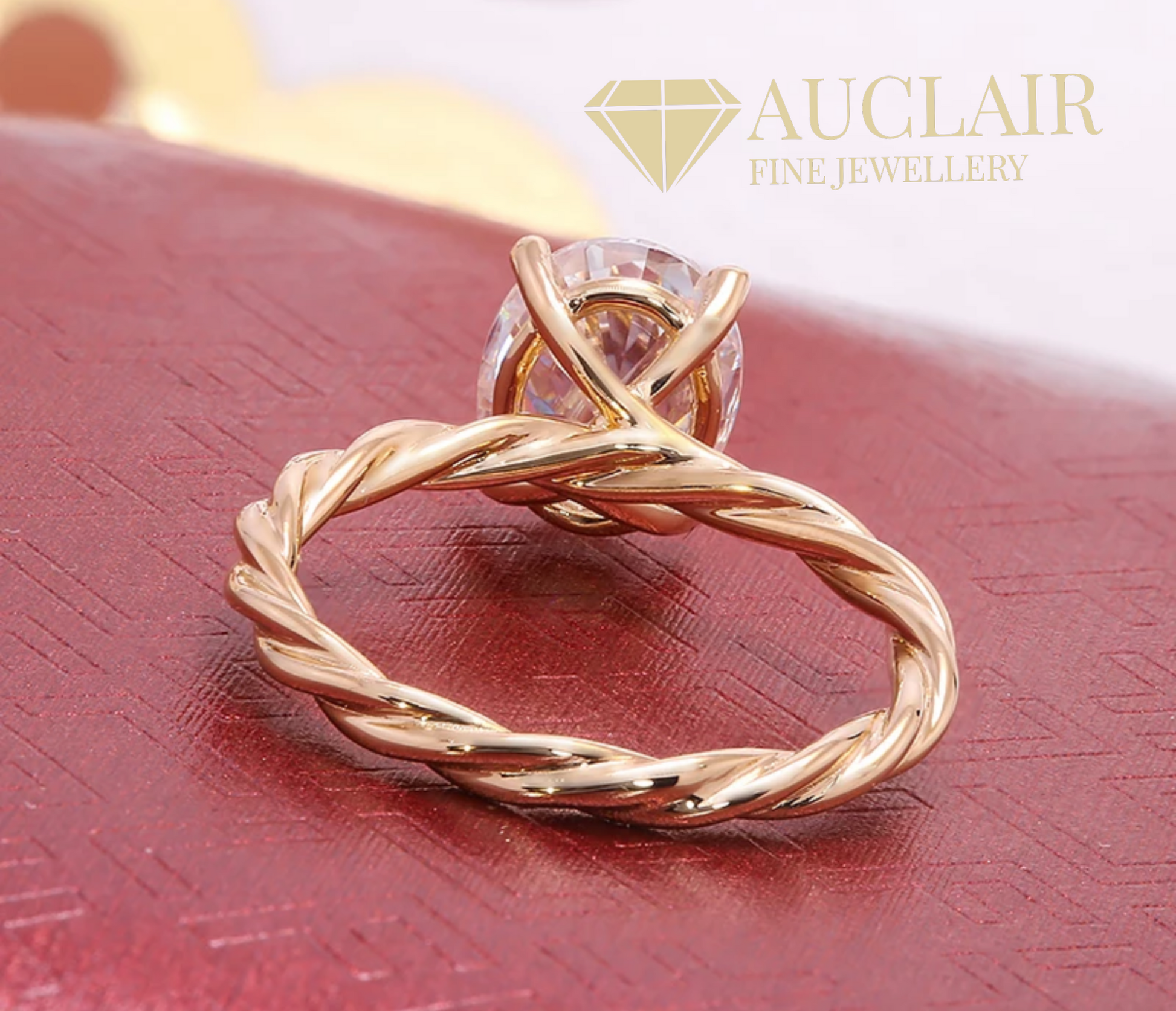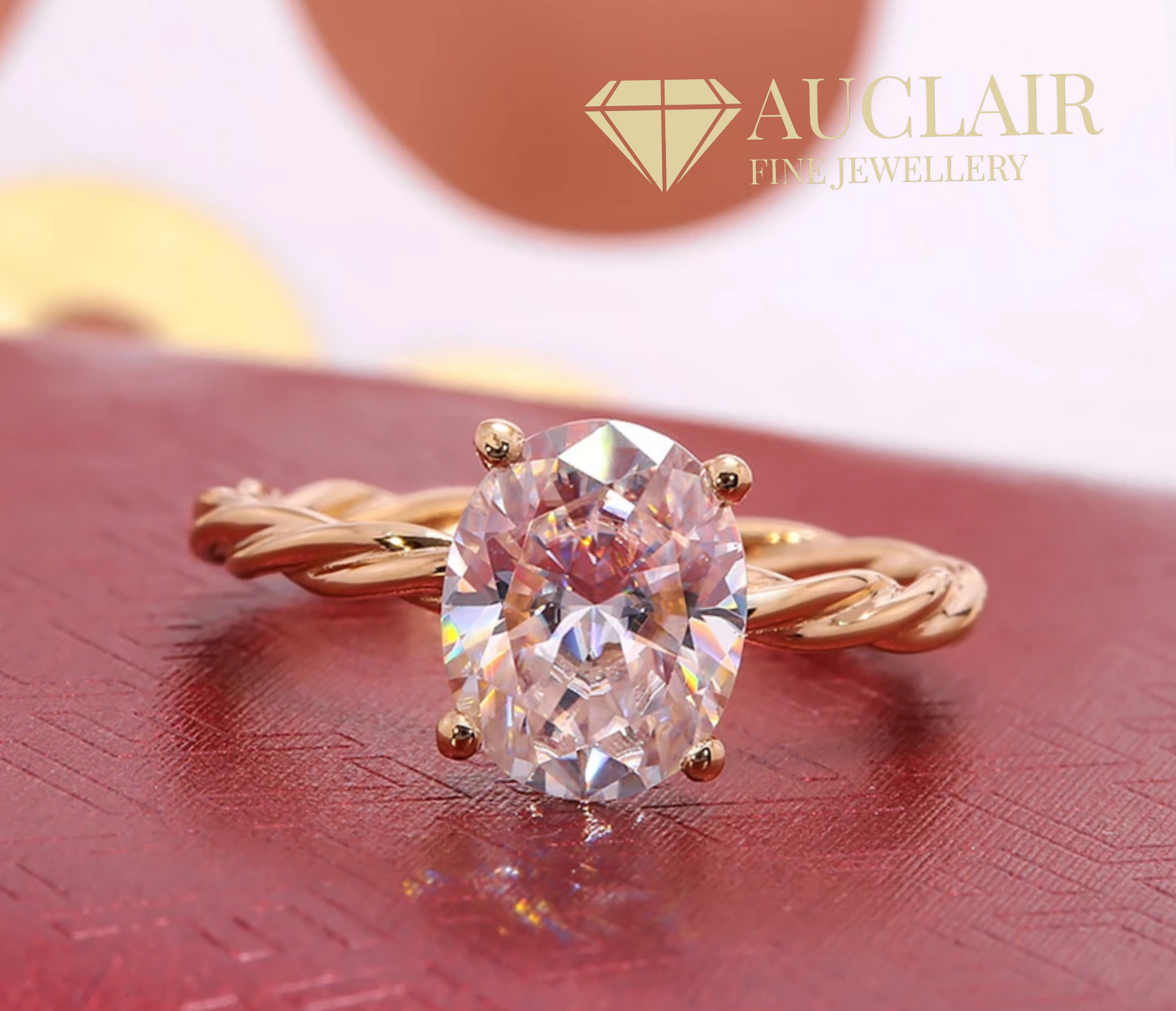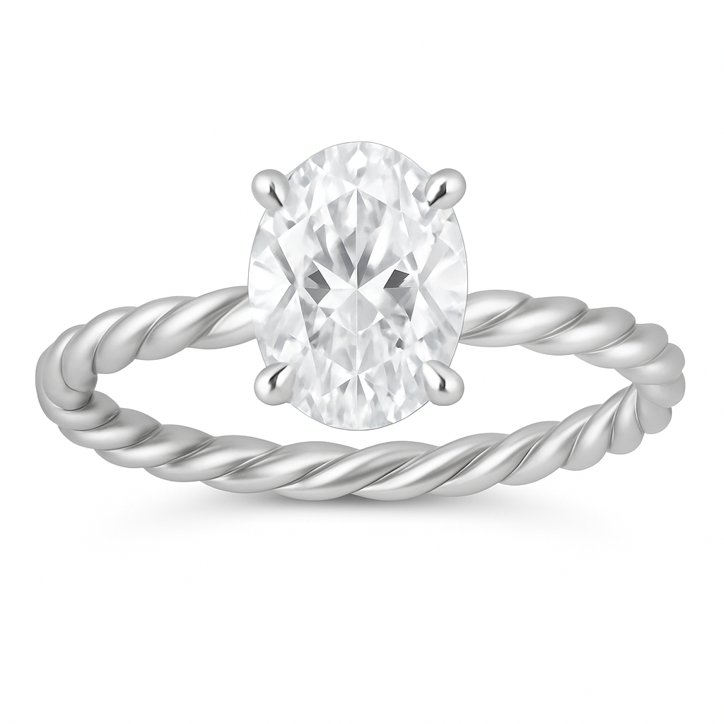 Introducing the Ariana ring, a true masterpiece of refined elegance. Its intricately woven band design adds a sophisticated touch to this classic oval-cut engagement ring, seamlessly drawing the eye to the captivating 2-carat D-grade oval stone. Ideal for those who appreciate the timeless beauty of an oval cut yet seek a ring that stands out with distinctive character.