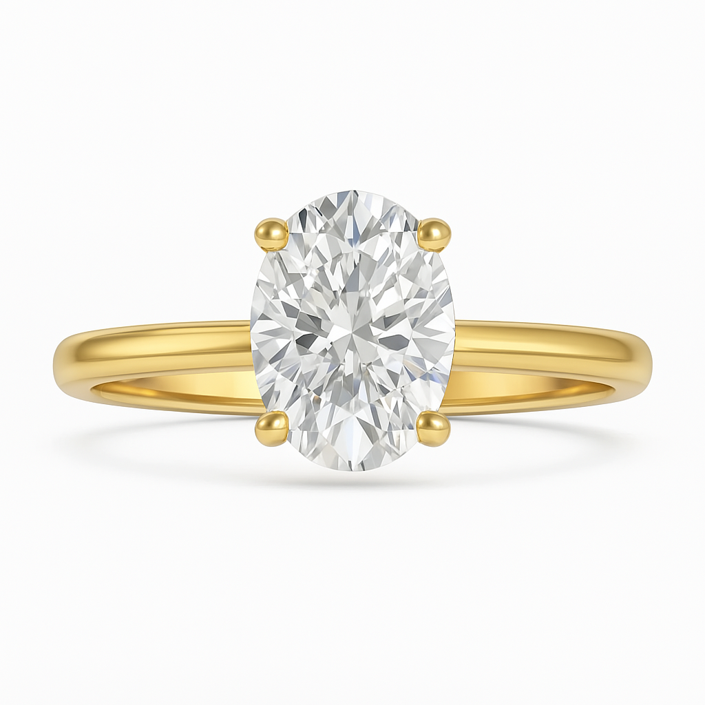 The Aurora Ring embodies timeless elegance, showcasing a radiant 1ct oval-cut solitaire that catches the light with captivating brilliance. Set in a refined four-prong setting atop a classic band, it strikes the perfect balance between simplicity and sophistication.