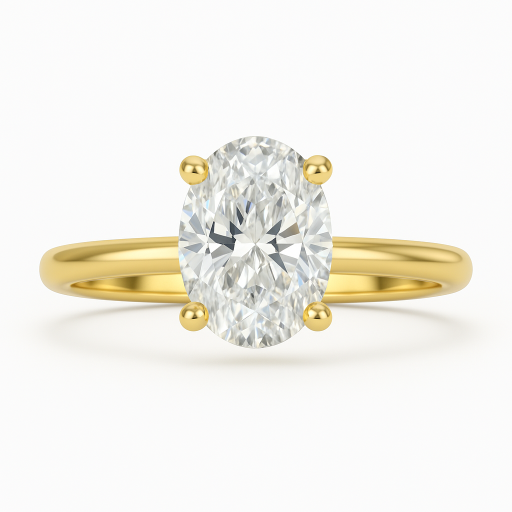 The Carmen Ring is a timeless statement of sophistication, featuring a mesmerising 2.5ct solitaire in an oval cut that captures the light with exceptional brilliance. Set in a refined four-prong design, it balances structure with elegance, allowing the centre stone to shine at its fullest.