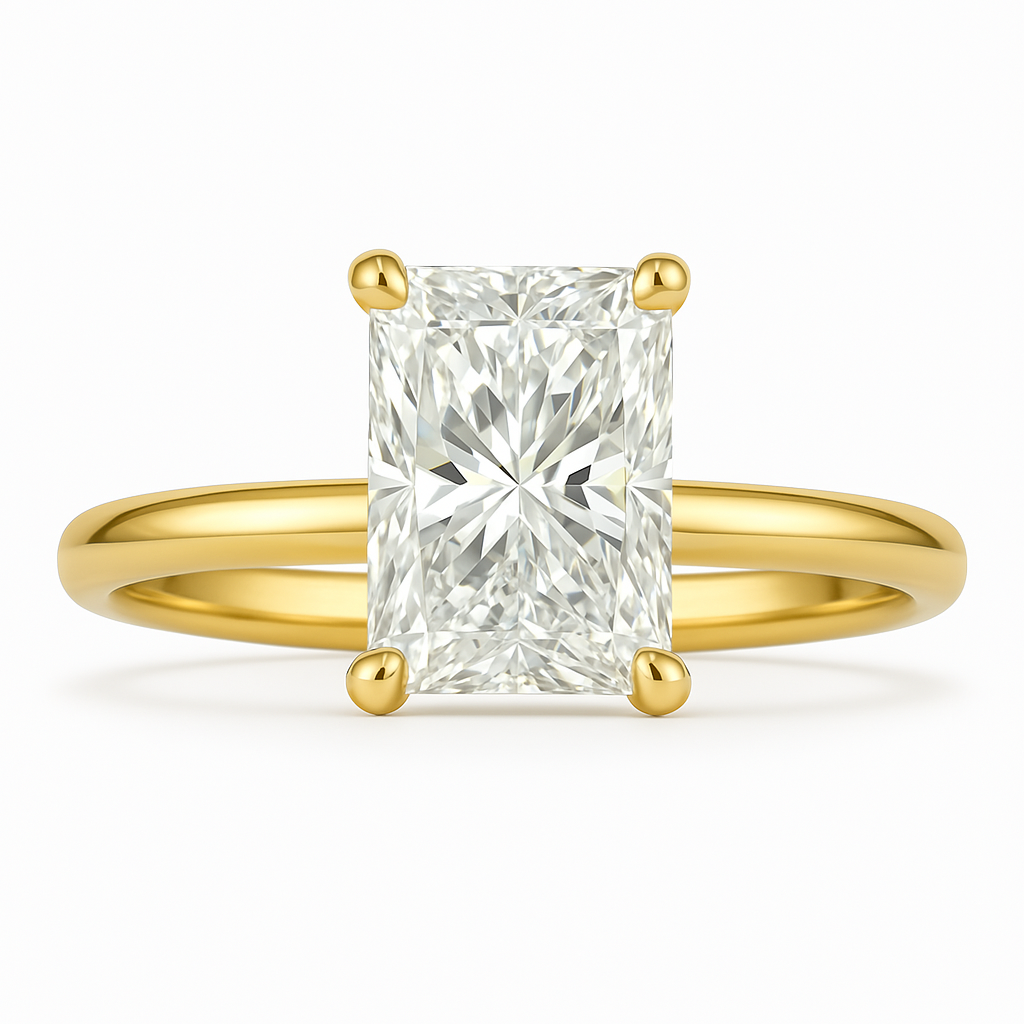 The Colette Ring is a timeless expression of refined beauty, featuring a 2.5ct radiant-cut centre stone that captures and reflects the light with captivating brilliance. Set in a classic four-prong design, it offers a clean, structured silhouette that lets the stone take centre stage.