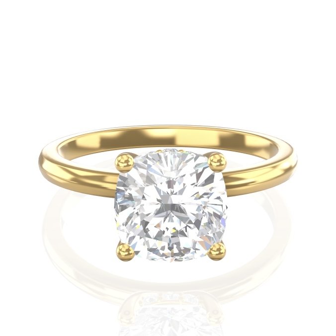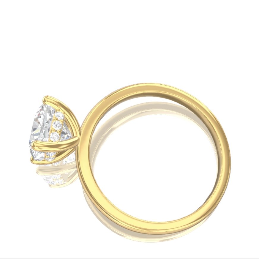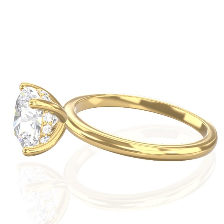A hidden halo tucked just beneath the center stone adds a subtle touch of enchantment, offering dimension and depth that reveals itself with every glance. Paired with a sleek, polished band, Cora strikes the perfect balance between modern sophistication and everlasting beauty.