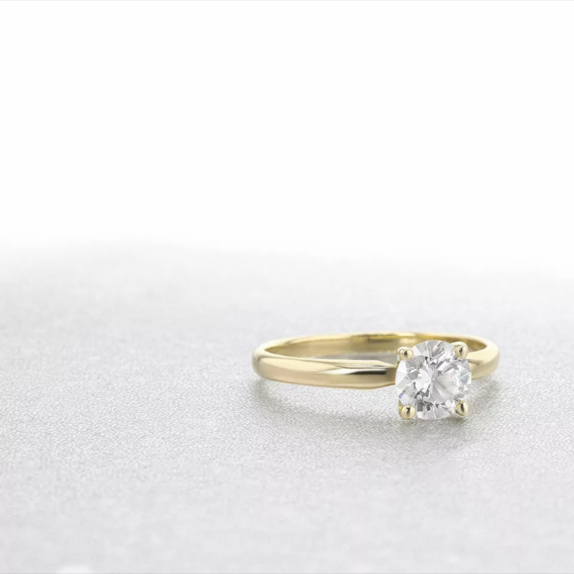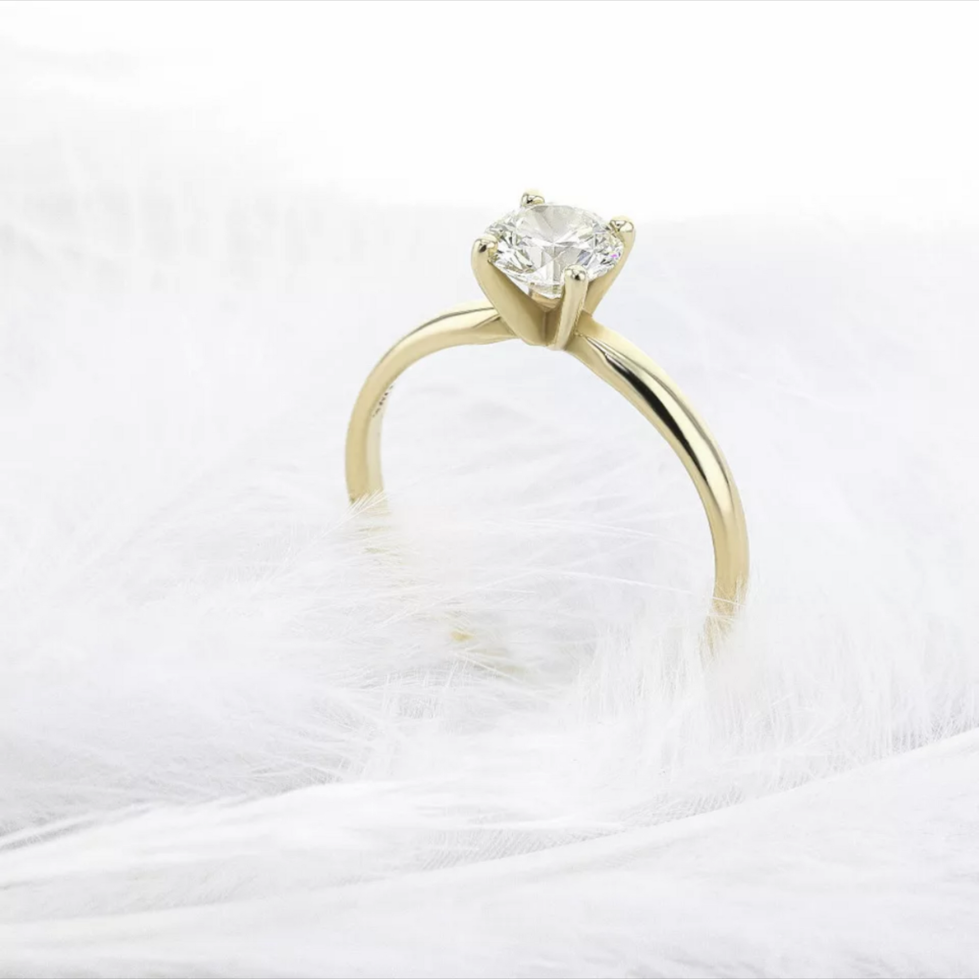 Our Courtney ring features a beautiful 0.5ct Moissanite stone, in a classic four prong setting. Complete with a beautiful, simplistic plain band. Our Courtney ring is an excellent and timeless choice for an engagement ring, a true classic! Available in all gold grades and colours, and sterling silver.