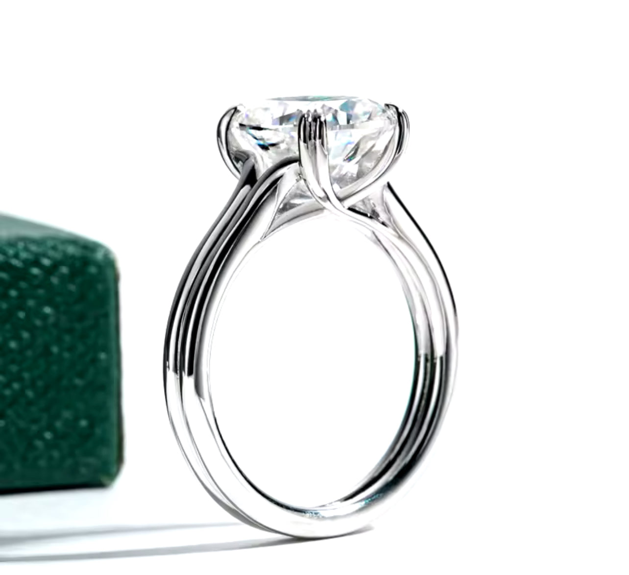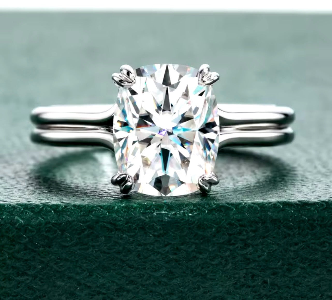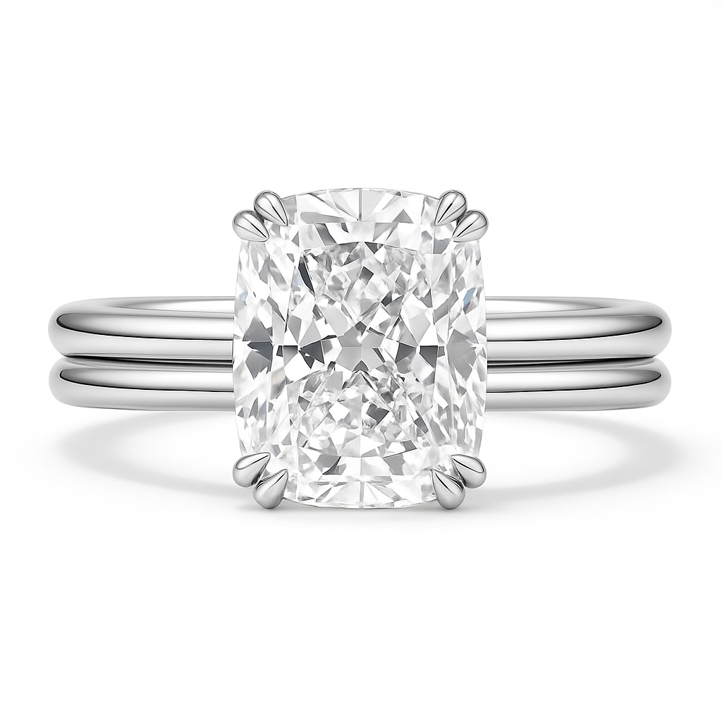 The Cressida ring is a statement of refined luxury, showcasing a breathtaking 4-carat cushion-cut center stone, elegantly secured with double prongs for added sophistication. Its wide band enhances the ring’s presence, creating a bold yet timeless piece that exudes both strength and elegance. The Cressida ring is designed for those who seek a captivating piece with enduring style and allure.