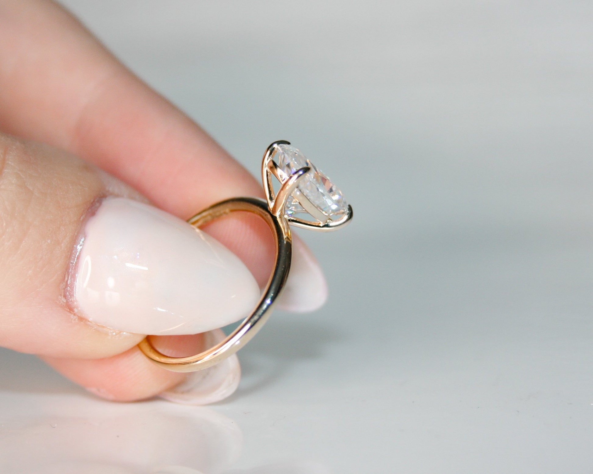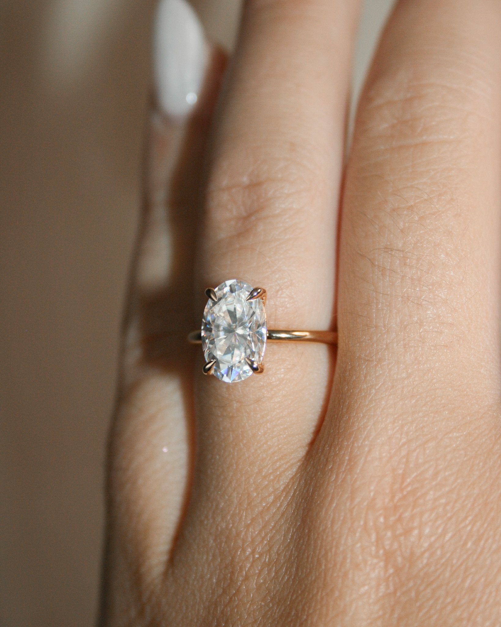 The understated gold band complements the stunning oval cut to perfection, making it the perfect choice for those who value both elegance and uniqueness. Whether it's for your special someone or for yourself, the Eden ring will make a statement and leave a lasting impression.