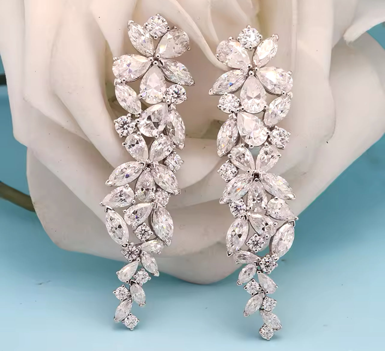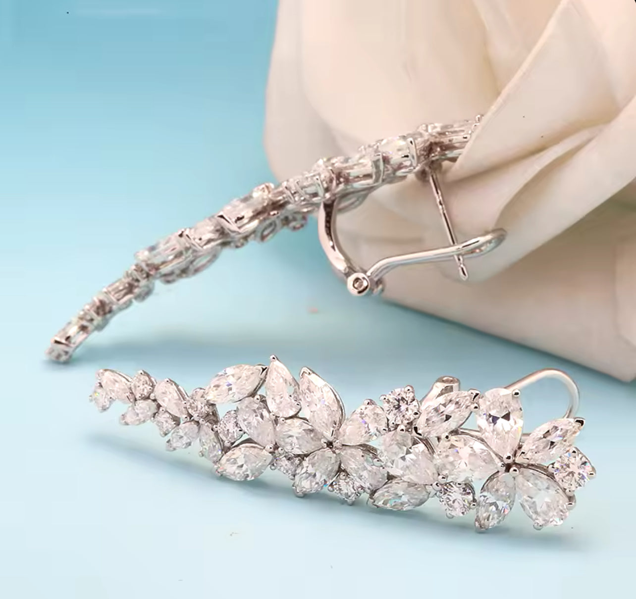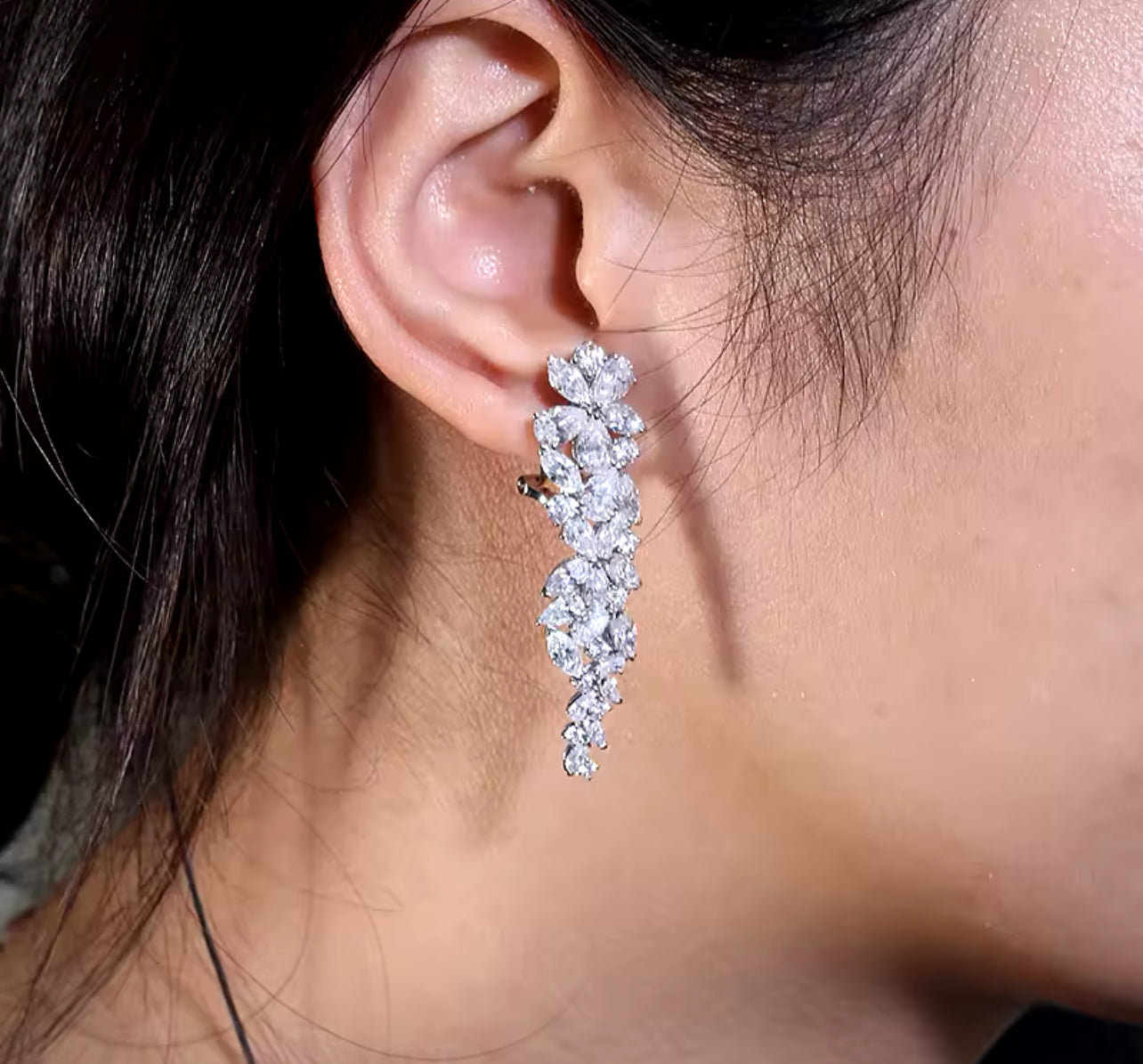 The Eleonora earrings are a true masterpiece, featuring an exquisite array of meticulously cut moissanites with an impressive total carat weight of 11. Each stone is expertly set to capture light from every angle, creating a radiant display that commands attention. Designed for those who seek unparalleled elegance, the Eleonora earrings are the ultimate statement of luxury and sophistication.