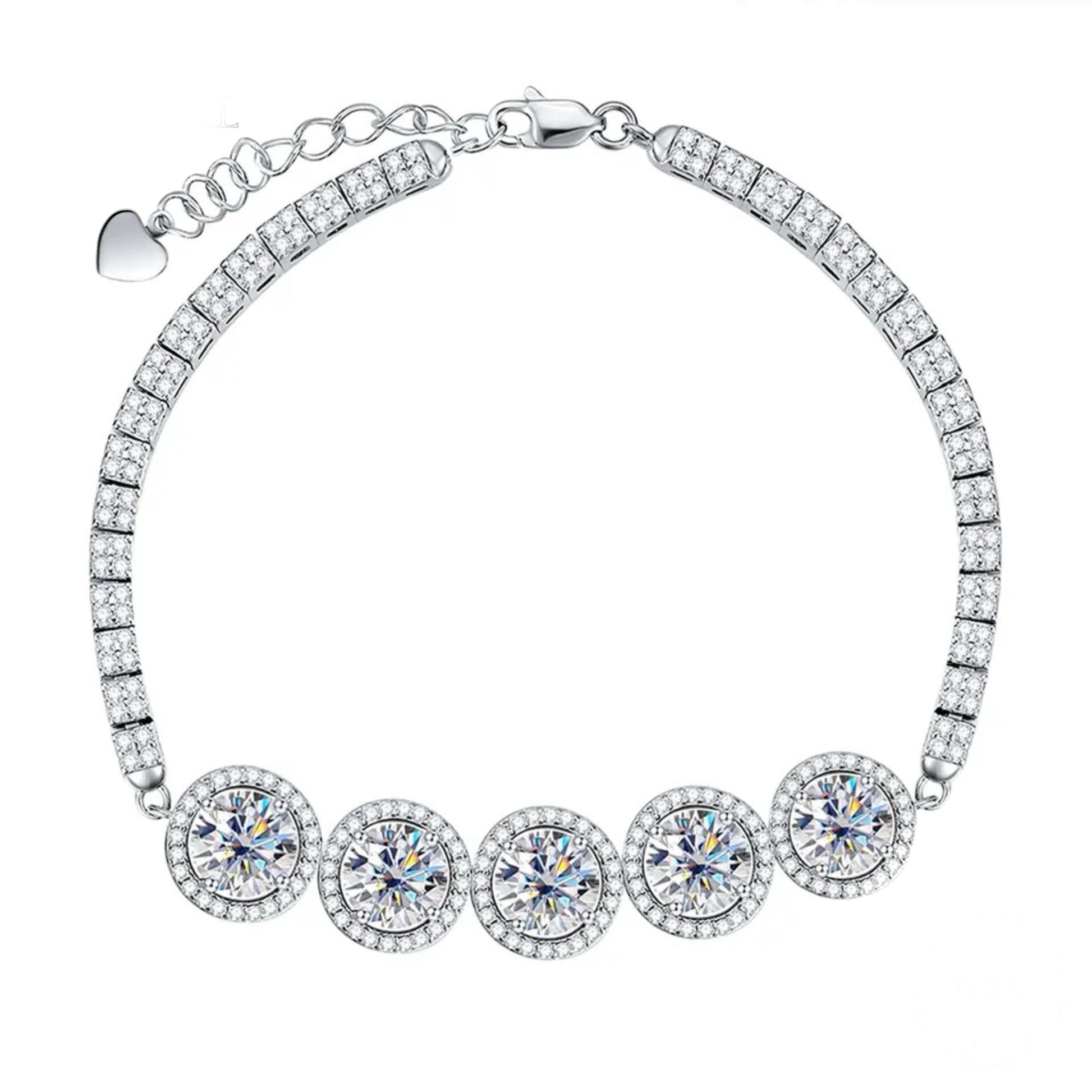 Introducing our Eulalie Bracelet, featuring five exquisite 1ct moissanite stones. This stunning piece combines timeless elegance with modern sophistication, making it a perfect addition to any jewellery collection.
