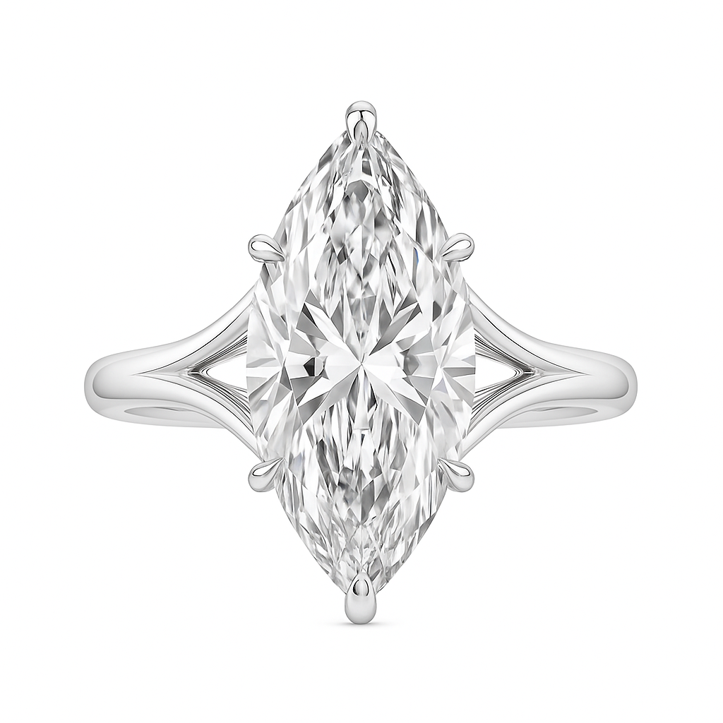 Our Frances ring is a study in grace and grandeur. At its heart lies a breathtaking 4ct marquise diamond, cradled by six delicate prongs that embrace the stone like petals around a bloom. The split shank band adds a sculptural elegance, drawing the eye inward and offering a sense of lightness and lift. Designed to feel both timeless and quietly daring, the Frances is for the romantic who finds beauty in boldness.