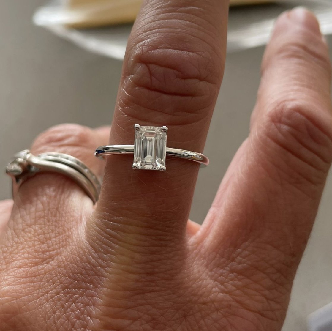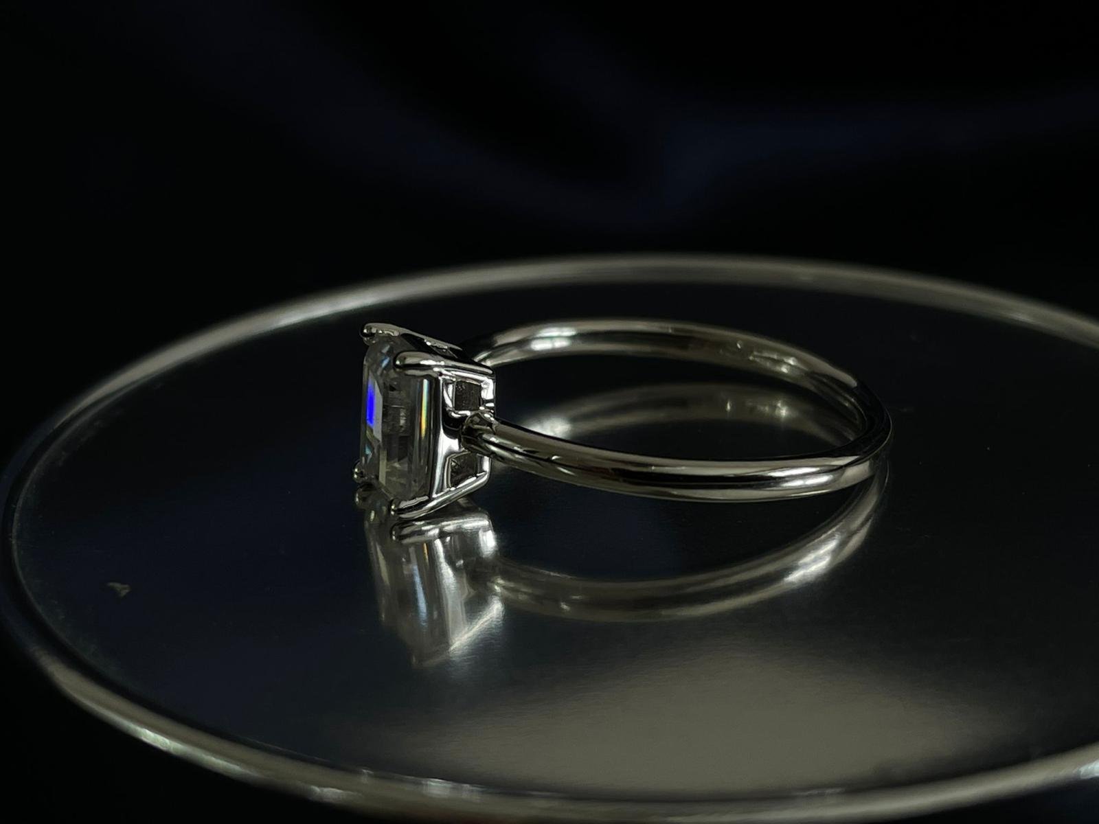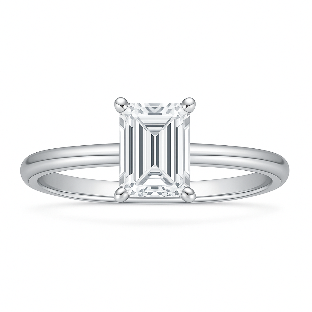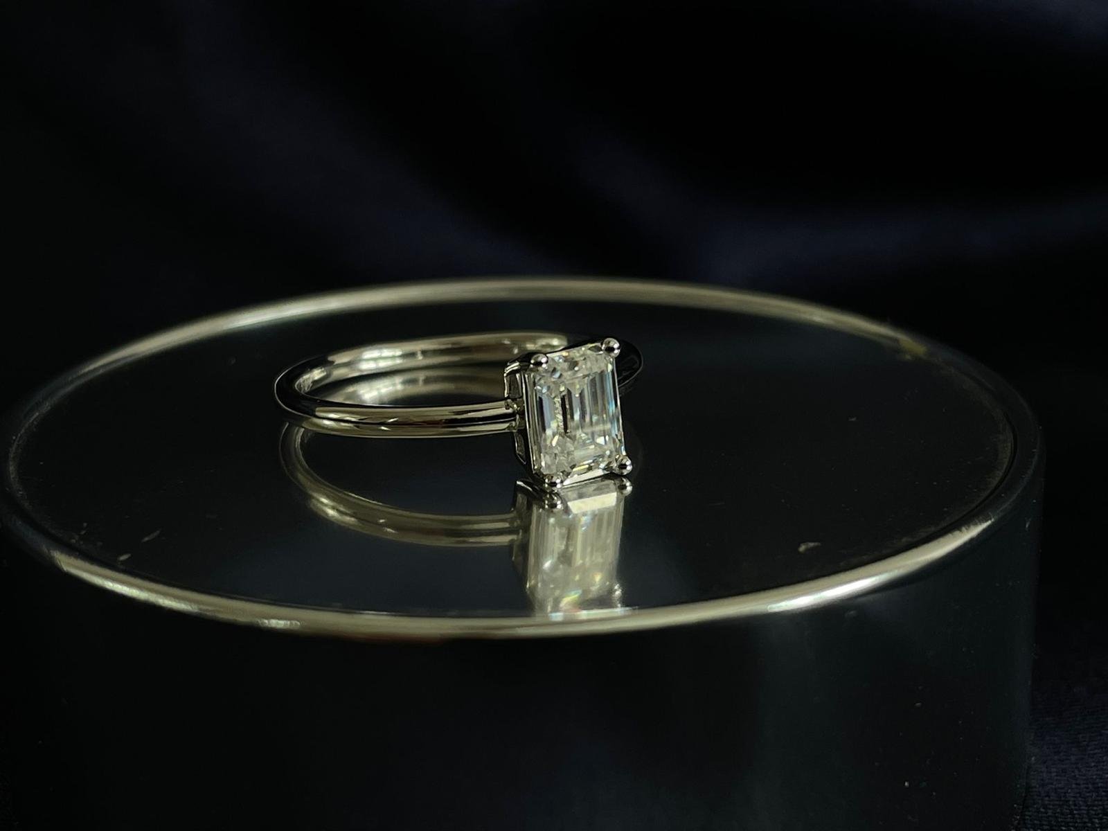 The Hayley Ring is a study in modern elegance. At its center, a 1ct emerald-cut stone takes the spotlight — prized for its clean lines, captivating clarity, and quiet sophistication. Set in a sleek four-prong setting, every detail is thoughtfully designed to let the beauty of the stone shine.