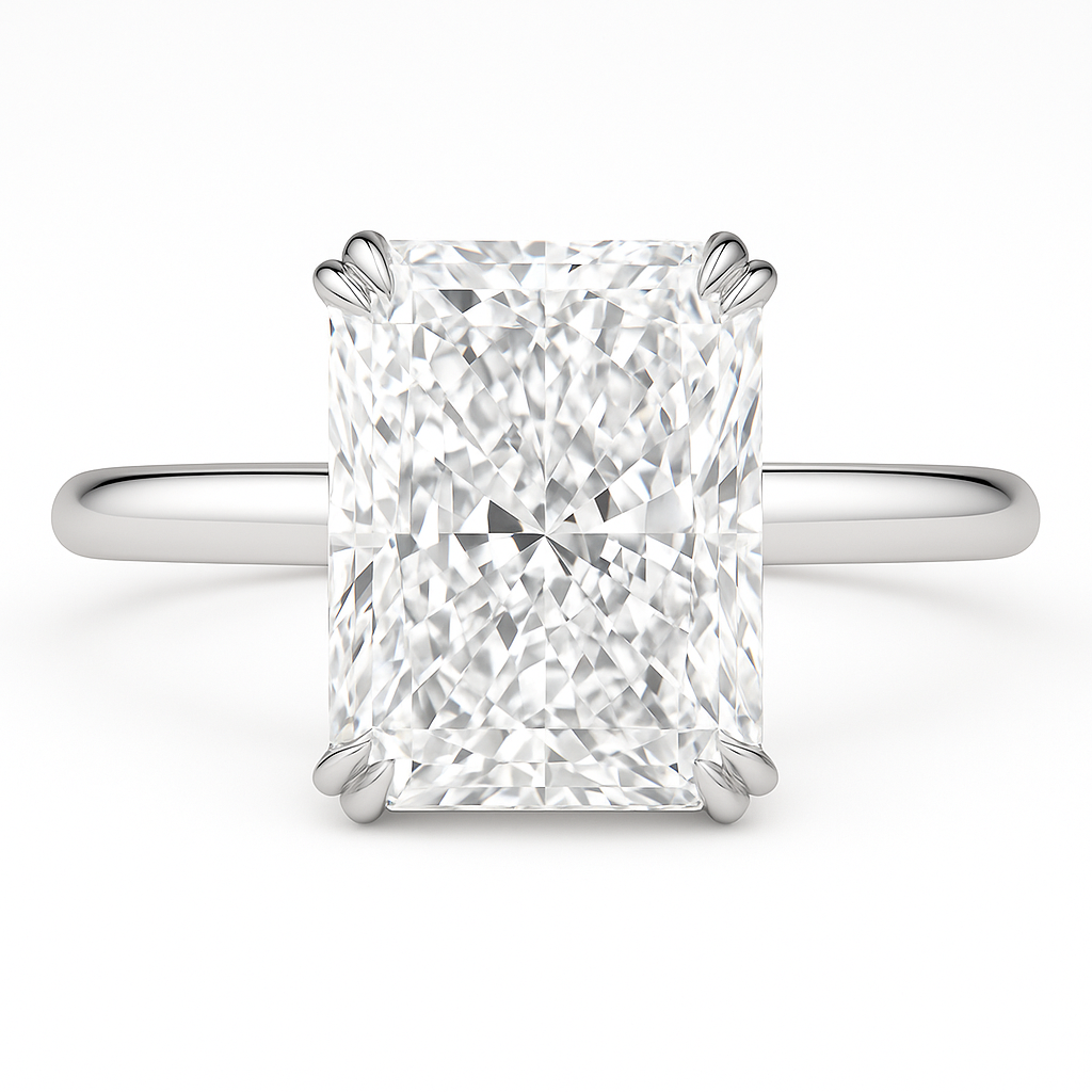 Introducing the Ivy Ring — a striking blend of bold brilliance and refined elegance. Featuring a captivating 4ct radiant-cut stone, this design is meticulously set with double prongs to enhance both security and symmetry. Nestled beneath the centre stone, a hidden halo offers a subtle yet dazzling layer of sparkle, creating depth and intrigue from every angle.
