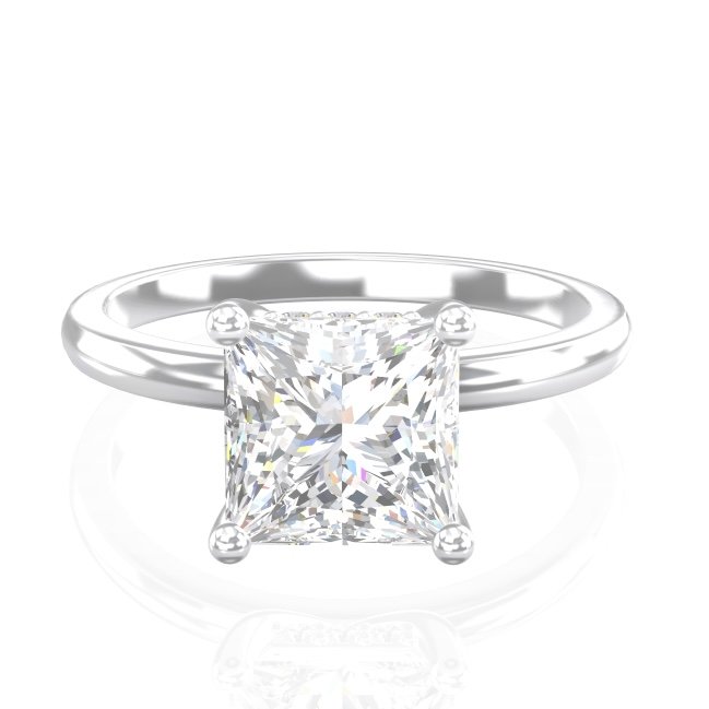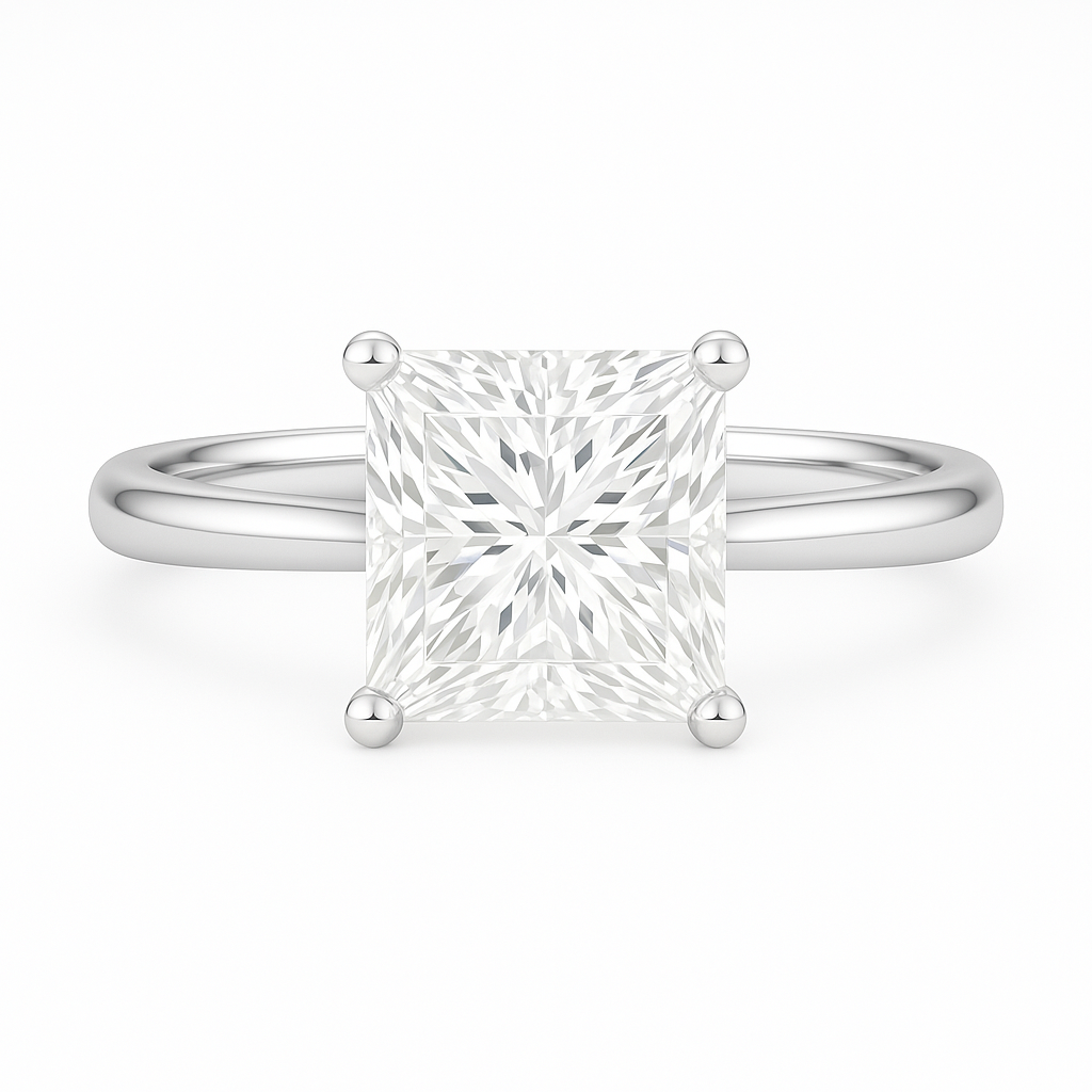 Introducing the Jade Ring — an embodiment of timeless sophistication. At its center sits a captivating 2.5ct princess-cut stone, designed to catch the light with every movement. Its crisp lines and radiant facets offer a bold yet refined presence, perfectly complemented by a classic four-prong setting that highlights the stone’s striking geometry.