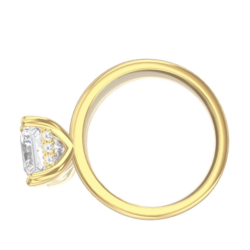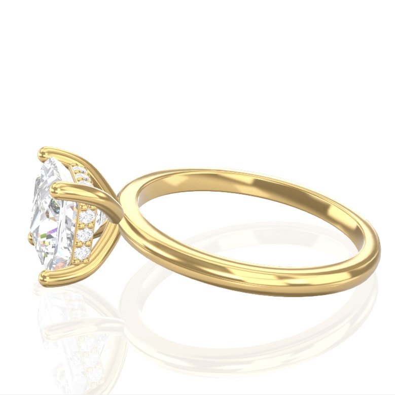 A delicate hidden halo beneath the center stone adds a whisper of brilliance, creating dimension and depth that feels both modern and romantic. Set on a sleek, polished band, Jade transcends trends with a quiet confidence that speaks to enduring elegance.