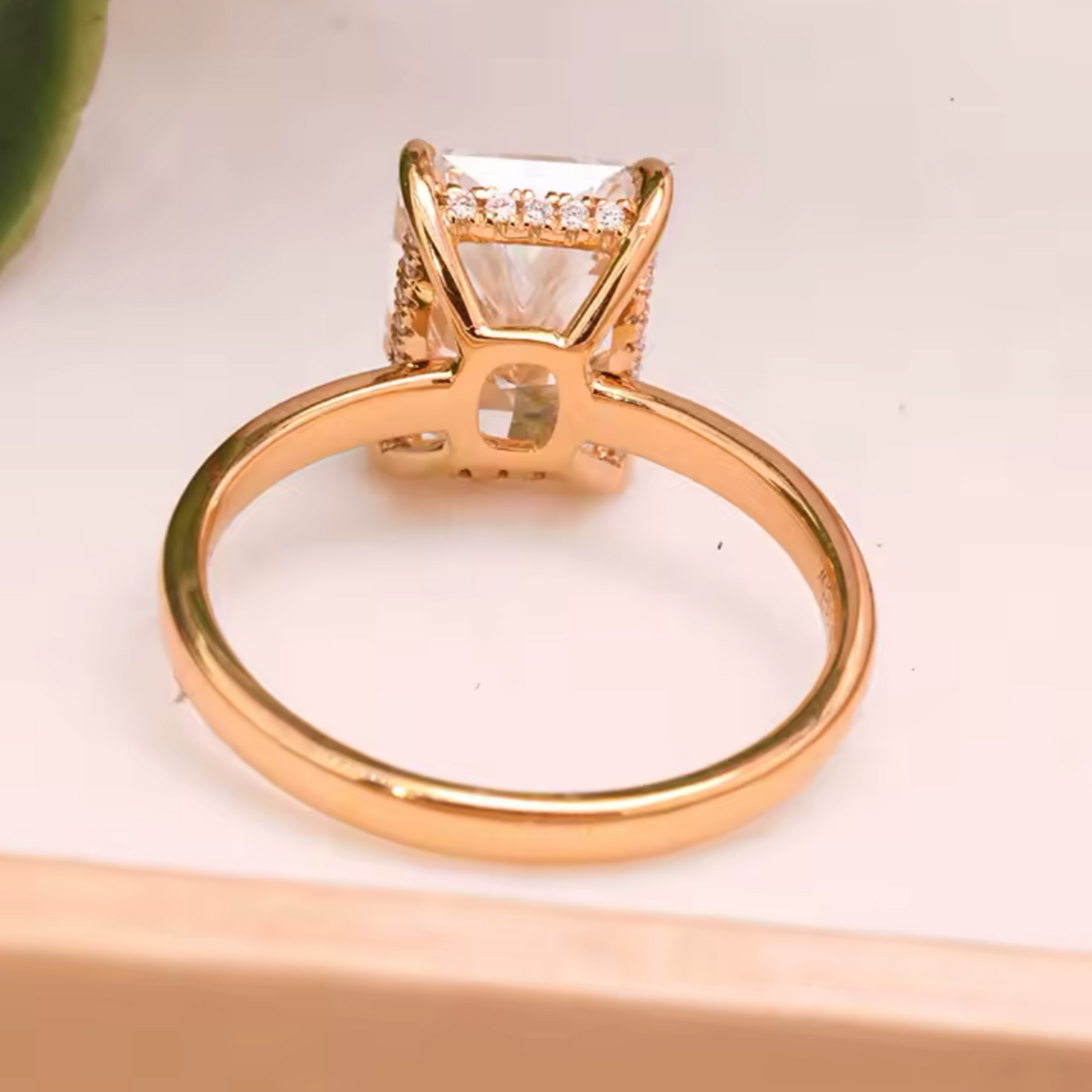 Adding to its allure, a hidden halo beneath the center stone provides an extra layer of sparkle, subtly enhancing its radiance from every angle. Designed for those who love understated luxury with a touch of intricate detail, the Jane Ring is the perfect choice for an engagement ring that will be cherished for a lifetime. 💎✨
