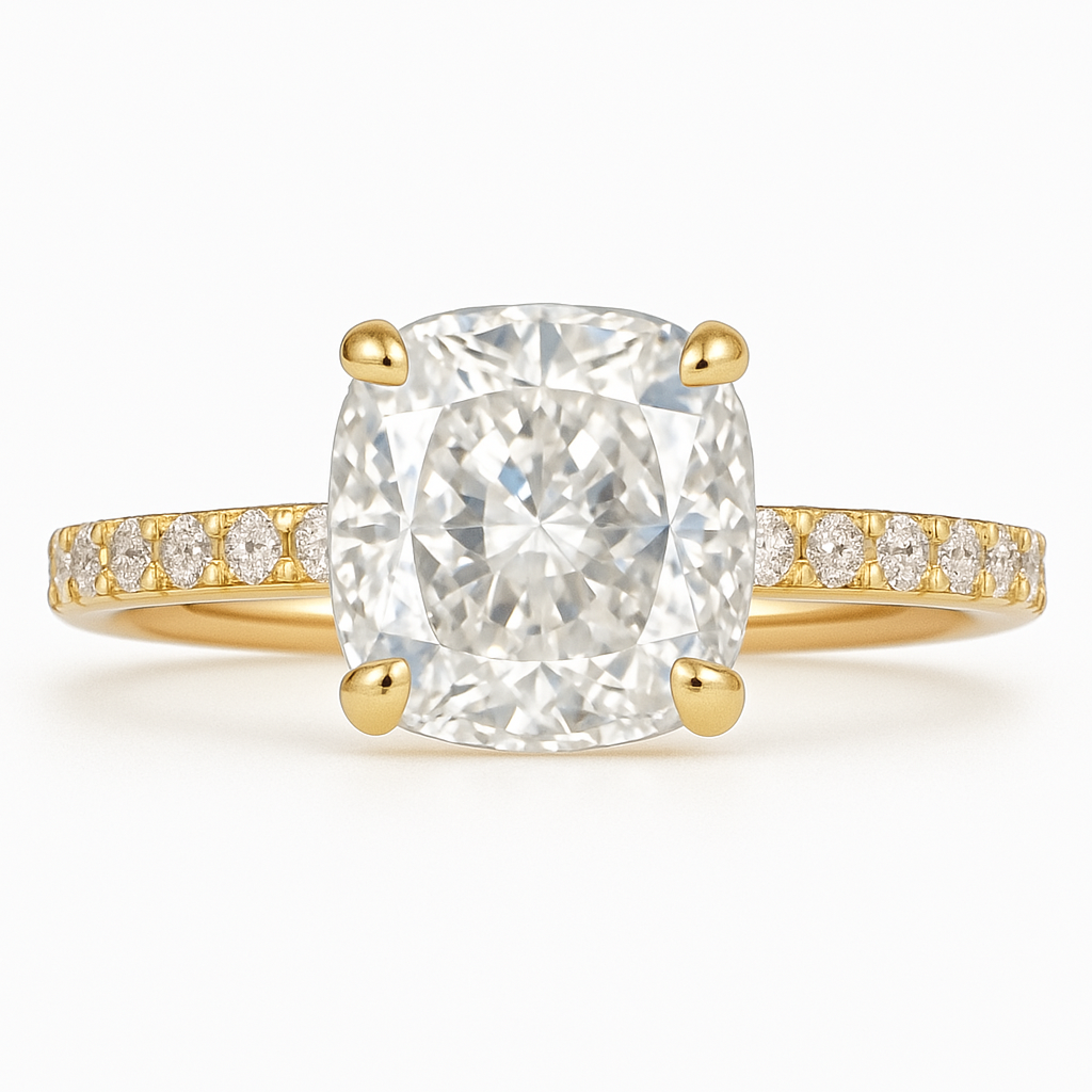 Presenting the Laila ring, a mesmerizing fusion of timeless elegance and contemporary charm. This captivating piece features a luminous 1-carat cushion-cut stone, delicately set upon a pave band that sparkles with understated allure. Meticulously crafted with precision and care, the Laila ring seamlessly blends classic sophistication with modern flair, ensuring its enduring appeal for generations to come. With its graceful silhouette and radiant sparkle, it stands as a cherished symbol of beauty and grace, destined to adorn the hand of its wearer with timeless elegance and style.