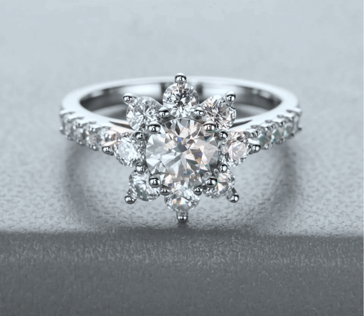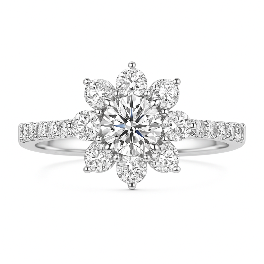 The Letisha Ring is the definition of refined elegance, featuring a captivating 6mm centre stone surrounded by a halo of delicately set accents for maximum sparkle and dimension. Designed to dazzle from every angle, it’s a true statement piece that commands attention without saying a word.