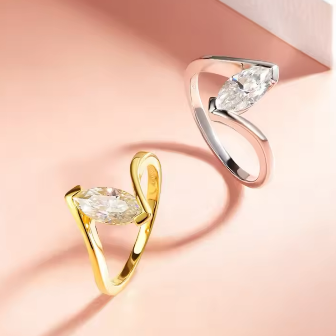 Our Margaret ring is a modern masterpiece, featuring a stunning 1ct marquise-cut moissanite that radiates brilliance from every angle. Set in a sleek, contemporary design, this ring combines timeless elegance with a bold, artistic edge. Whether you're celebrating an engagement, an anniversary, or simply indulging in a little luxury, the Margaret ring is a statement piece that embodies individuality and sophistication. With its unique silhouette and dazzling sparkle, it’s more than just a ring—it’s a symbol of style and love.