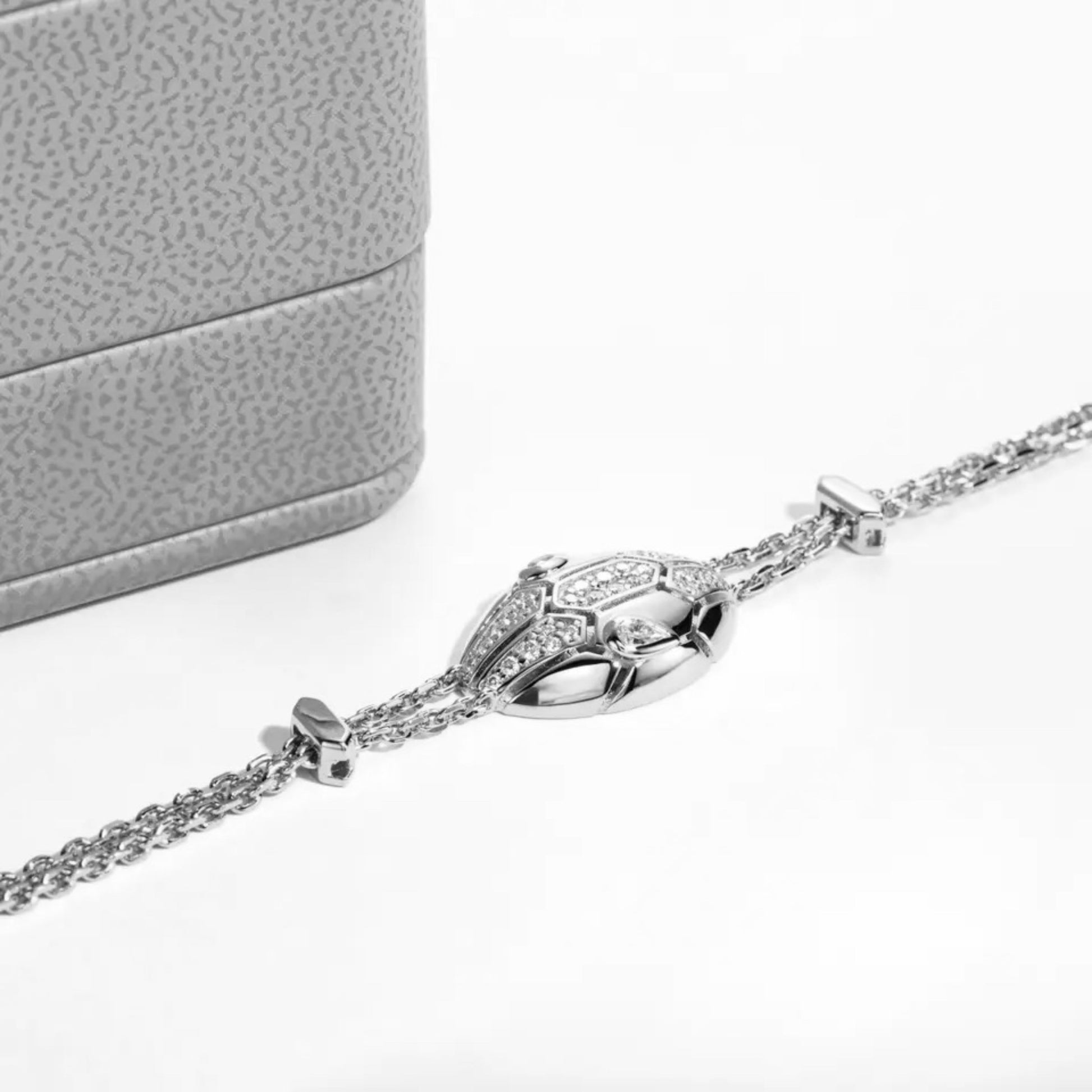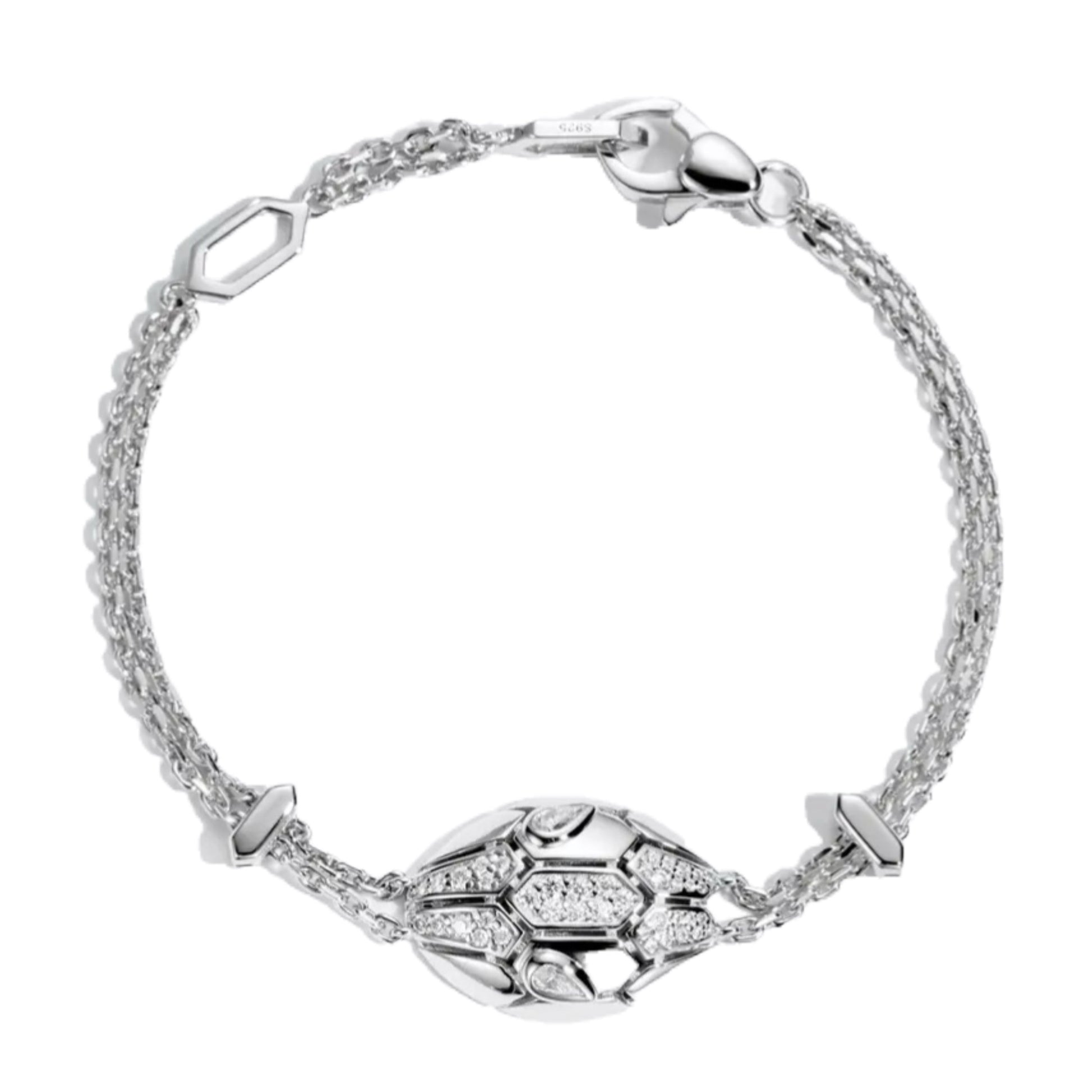 The Melisande Bracelet wraps around your wrist with fluidity and charm, echoing the sleek and sinuous movement of a serpent. Crafted with meticulous attention to detail, this bracelet showcases intricate patterns and textures that highlight its snake-inspired design.