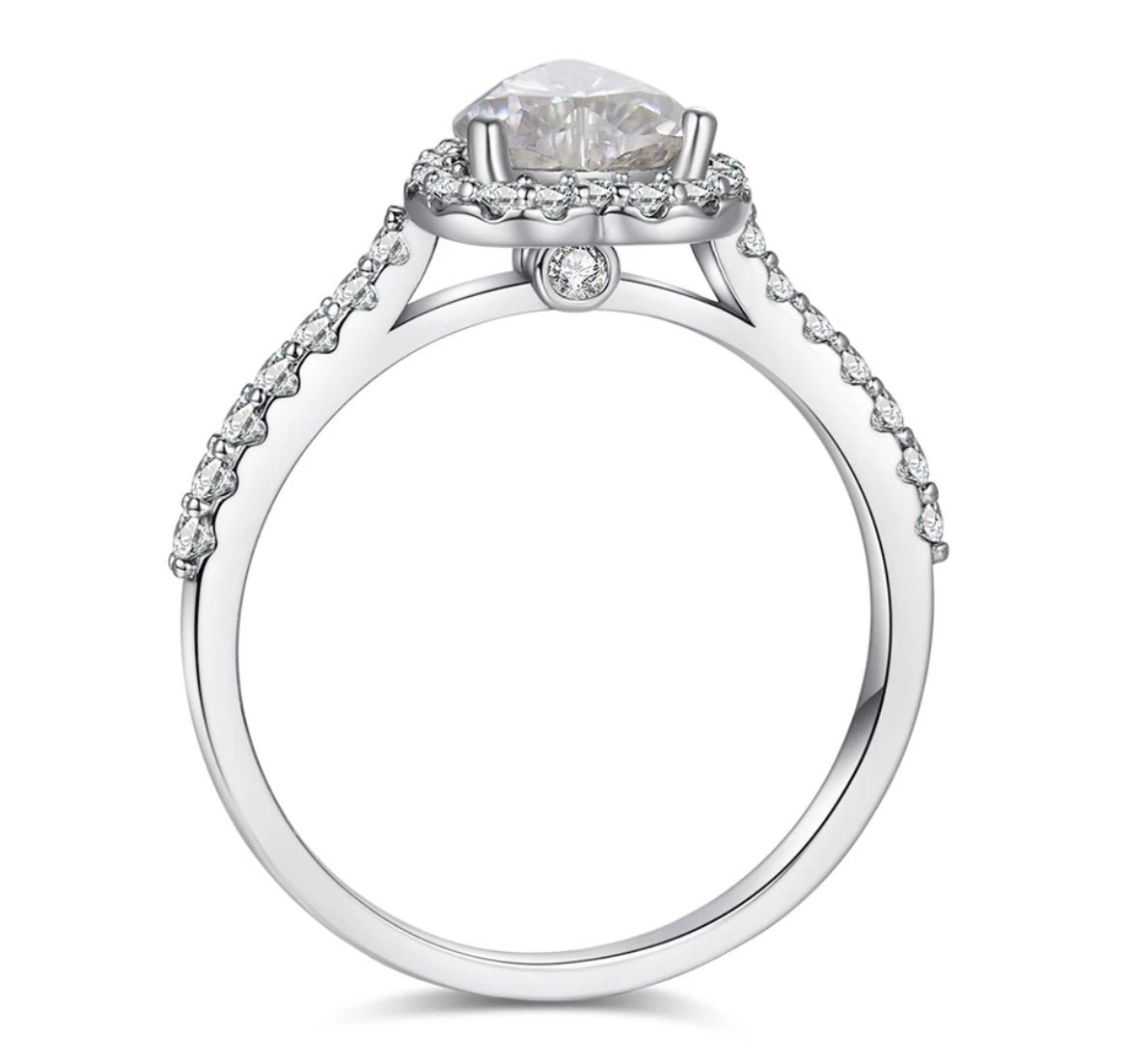 Framed by a shimmering halo and set on a delicate pavé band, this design enhances the brilliance of the centre stone while maintaining a sense of effortless elegance. A hidden detail beneath the stone adds a thoughtful finishing touch, ensuring beauty from every angle—front, side, and beyond.