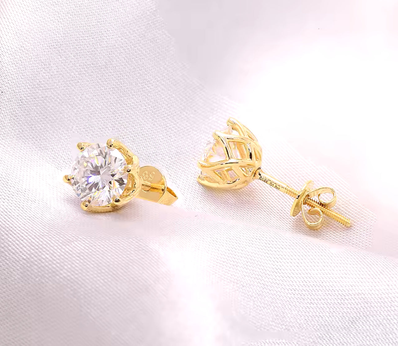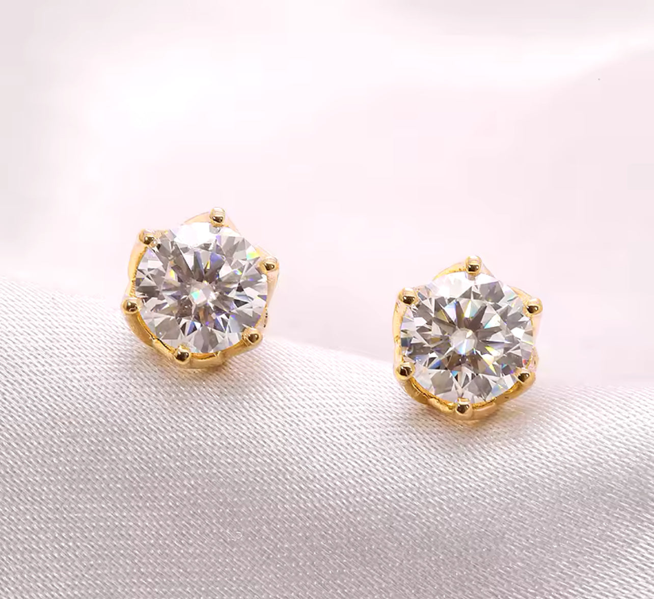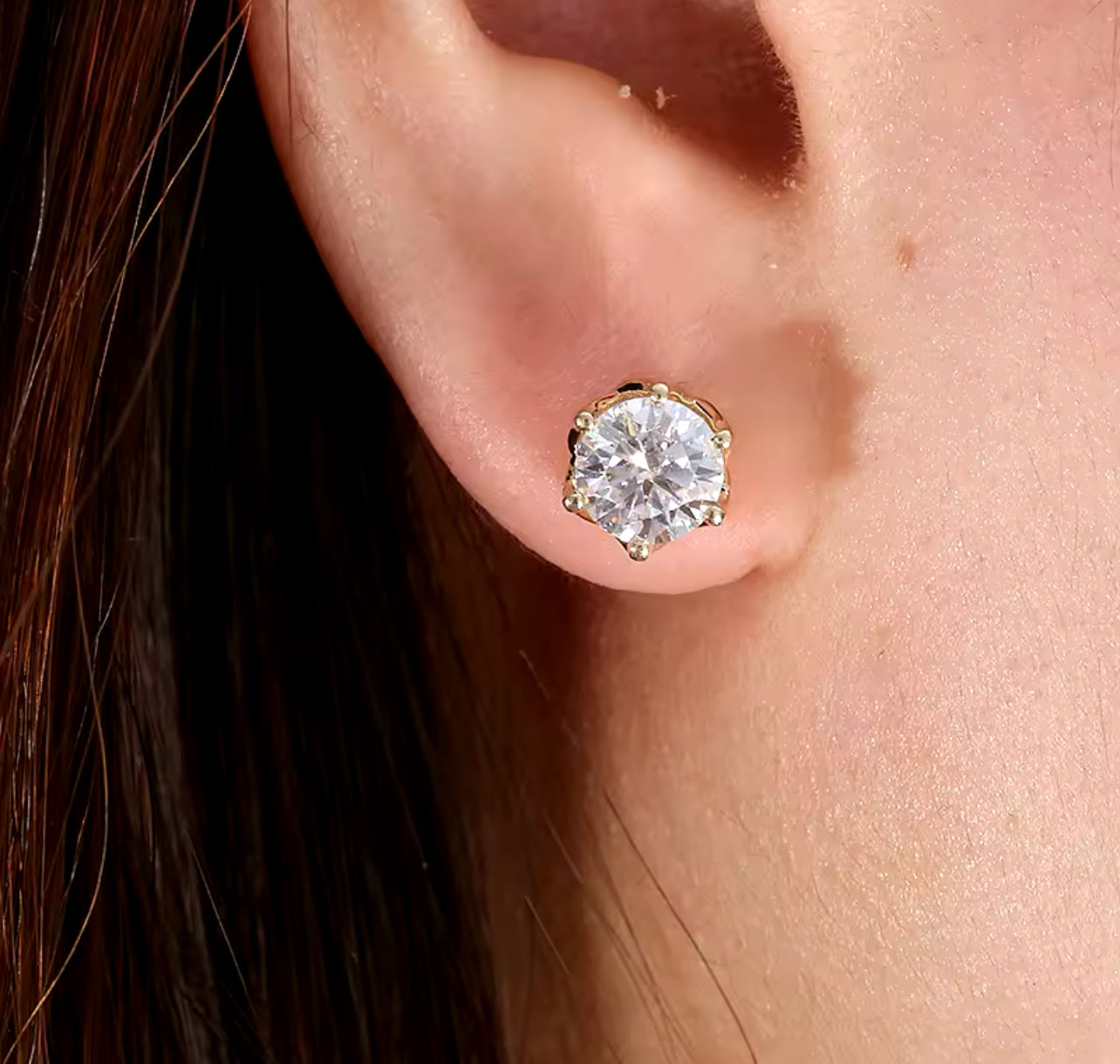 Our Sabine earrings are the epitome of timeless elegance, showcasing 1-carat moissanite stones for a combined total of 2 carats. Set in a beautifully intricate woven design, these earrings capture both classic sophistication and unique artistry. The Sabine earrings are crafted to complement any look with their refined sparkle and enduring charm.