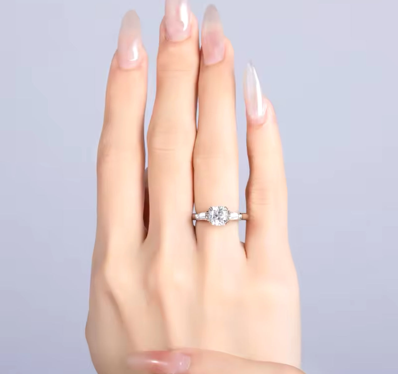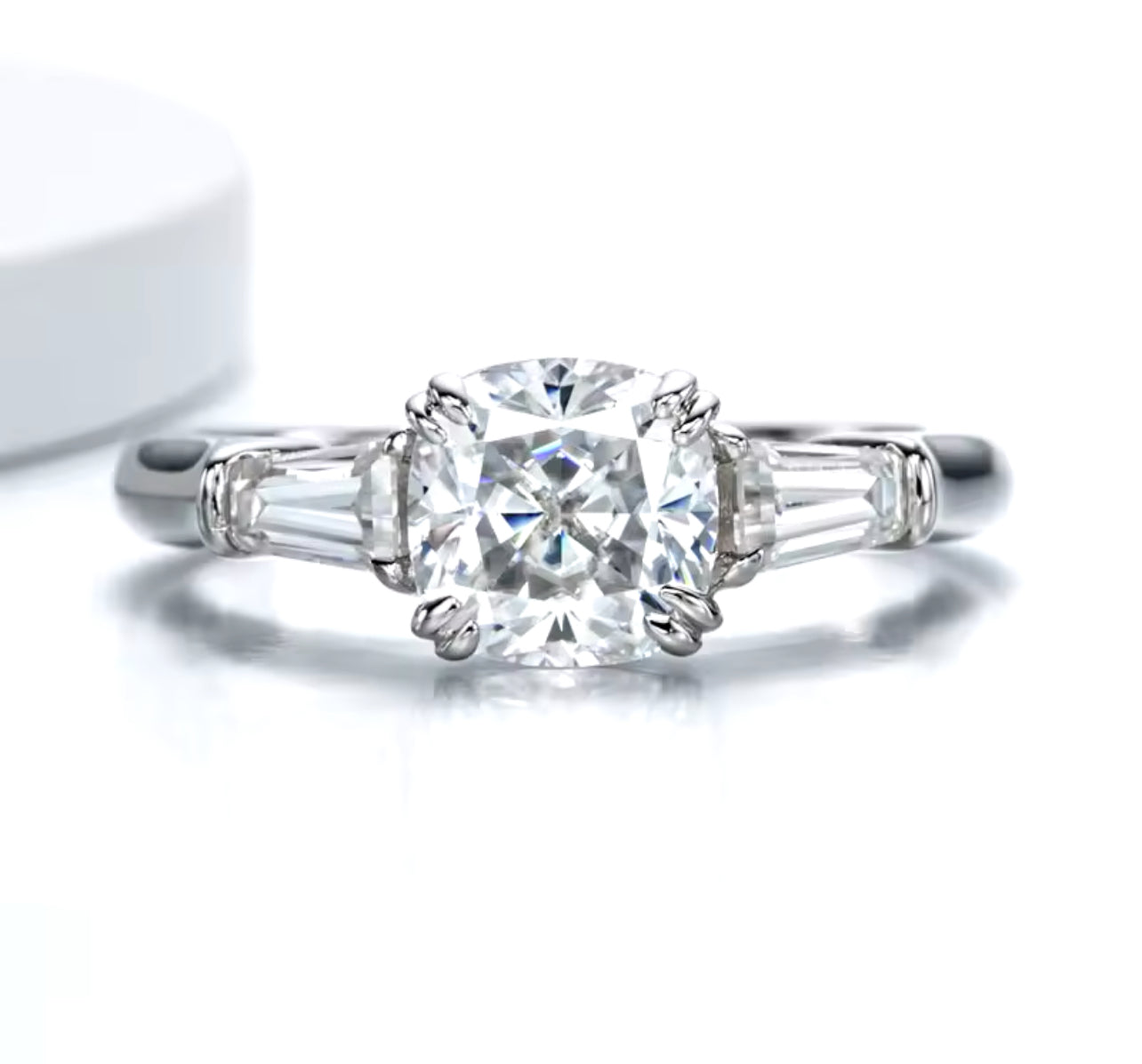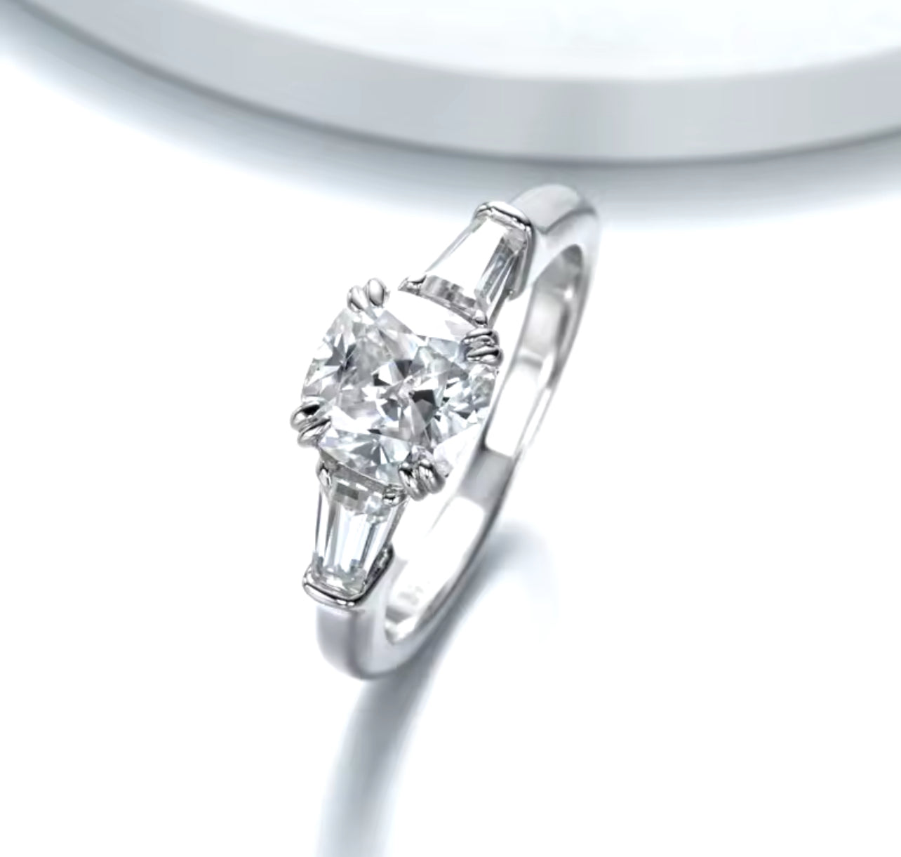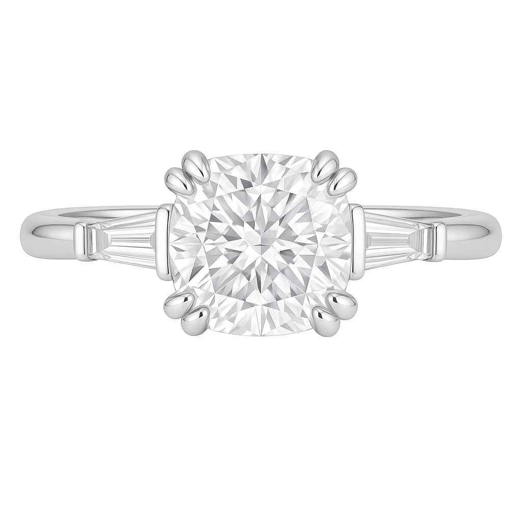 The Valencia ring is a masterpiece of classic elegance, featuring a captivating 2-carat square cushion-cut center stone that radiates timeless beauty. Flanked by gracefully tapered baguette side stones, this trilogy design embodies sophistication and balance. The Valencia is crafted to make a statement, combining traditional allure with modern refinement for those who seek a ring that’s both iconic and unforgettable.